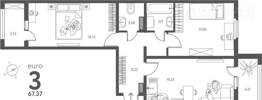 Общая площадь 67.4 м2