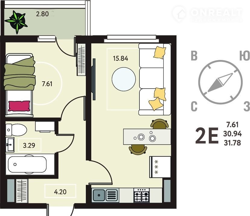 Общая площадь 31.8 м2
