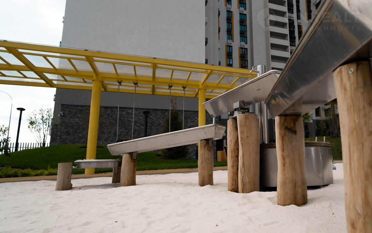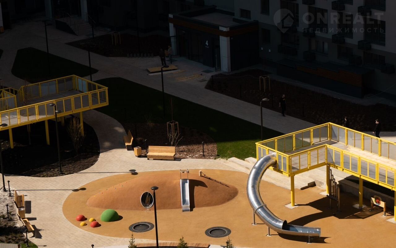 Концепция благоустройства сделана по специальному архитектурному проекту, с малыми архитектурными формами из металла с желтыми цветовыми акцентами, гармонирующими с фасадом домов. Для детской площадки предусмотрены игровые комплексы из натурального дерева в эко-стиле. Предусмотрено продуманное озеленение по дендроплану с автополивом и разноуровневое наружное освещение.
