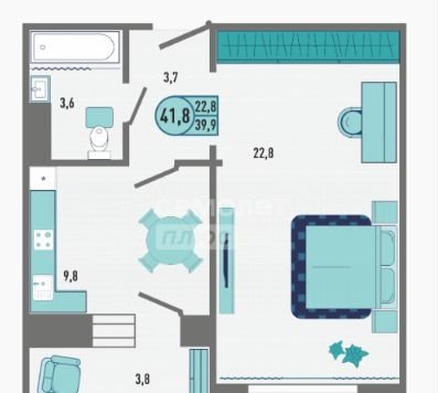 Общая площадь 41.8 м2