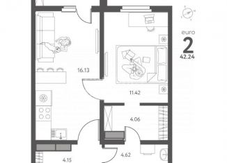 2-комнатная квартира на продажу, 42.2 м2, улица Перова, 2Д