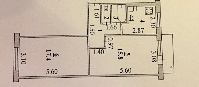 Площадь кухни 5.8 м2