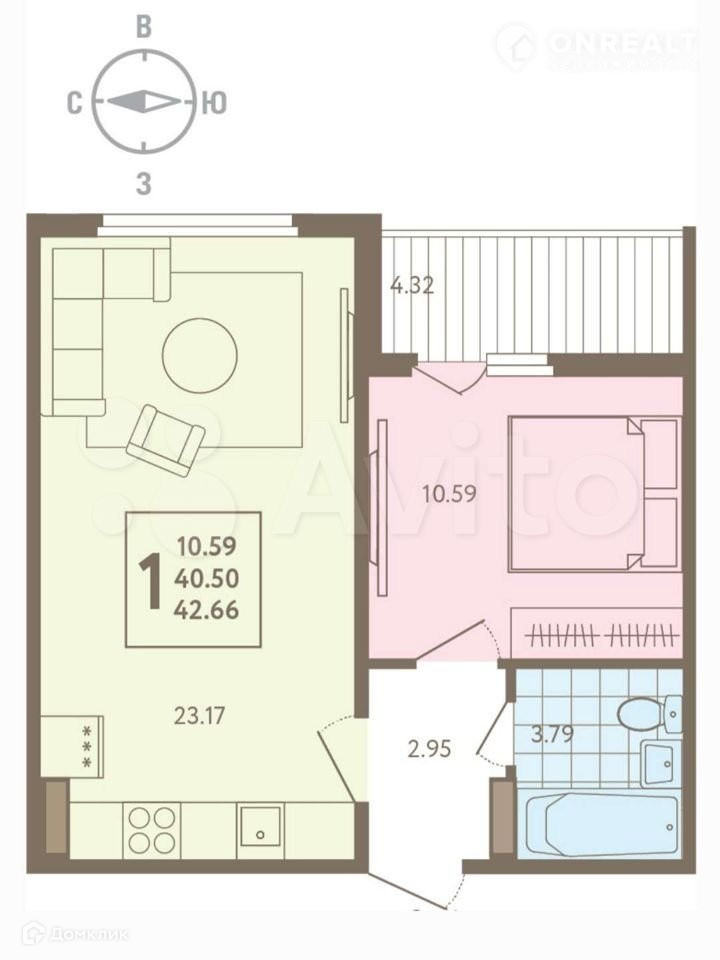 Общая площадь 43 м2