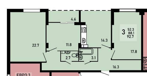Общая площадь 92.7 м2
