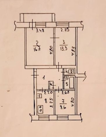 Общая площадь 61.2 кв м, все комнаты изолированы, большой коридор 9 м. Кухня 8м, комнаты 16,7 + 13,3 + 8,6 м.