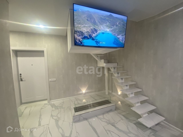 1 уровень: просторная кухня-гостиная, площадью 39м2, с панорамными окнами и уютным биокамином, на полу керамогранит с электрическим тёплым полом, санузел в керамограните, с дверью Invisible mr. Doors, отдельная гардеробная, входная дверь заменена на дверь фирмы Гардиан.