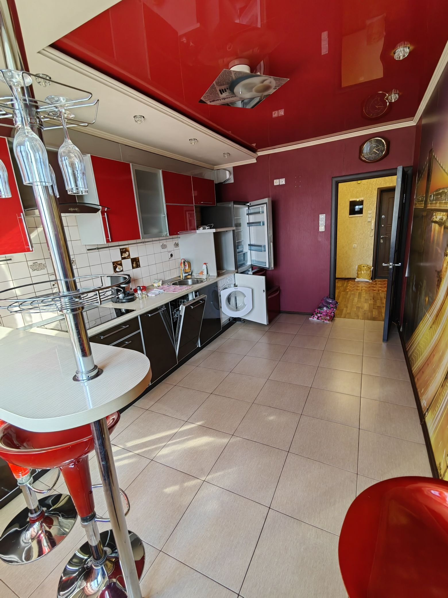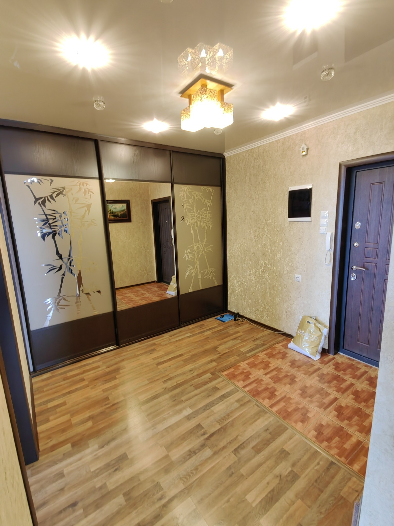 В квартире для ремонта использовались только качественные дорогостоящие материалы: окна пластиковые, дорогие межкомнатные двери, стены обои, пол в комнатах ламинат, в прихожей, кухне, ванной, туалете плитка, туалет и ванная комнаты раздельные и современно отделаны. Теплые полы в прихожей на кухне, туалете, ванной комнате. В квартире остается вся встроенная мебель и техника.
