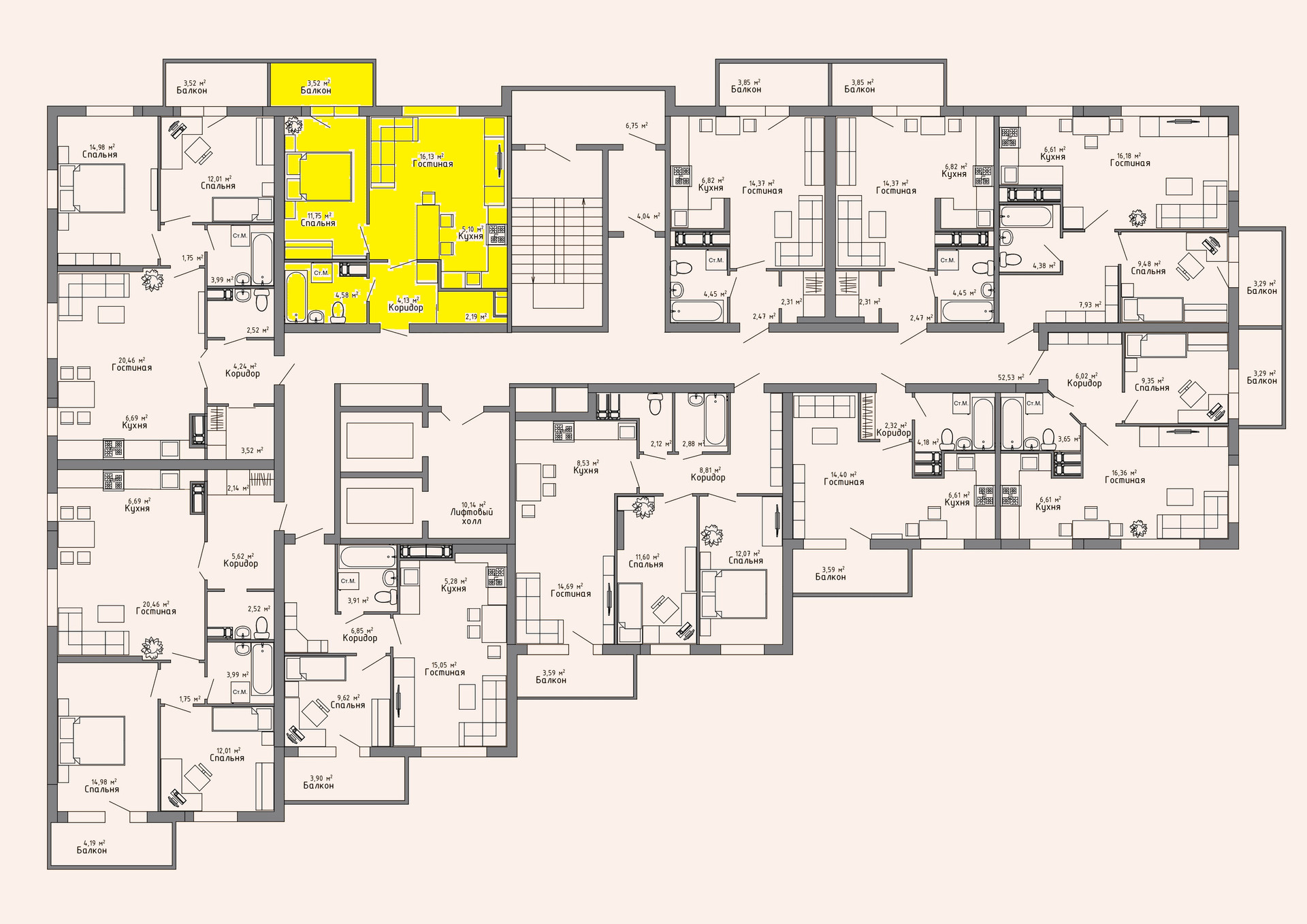Жилая площадь 12 м2