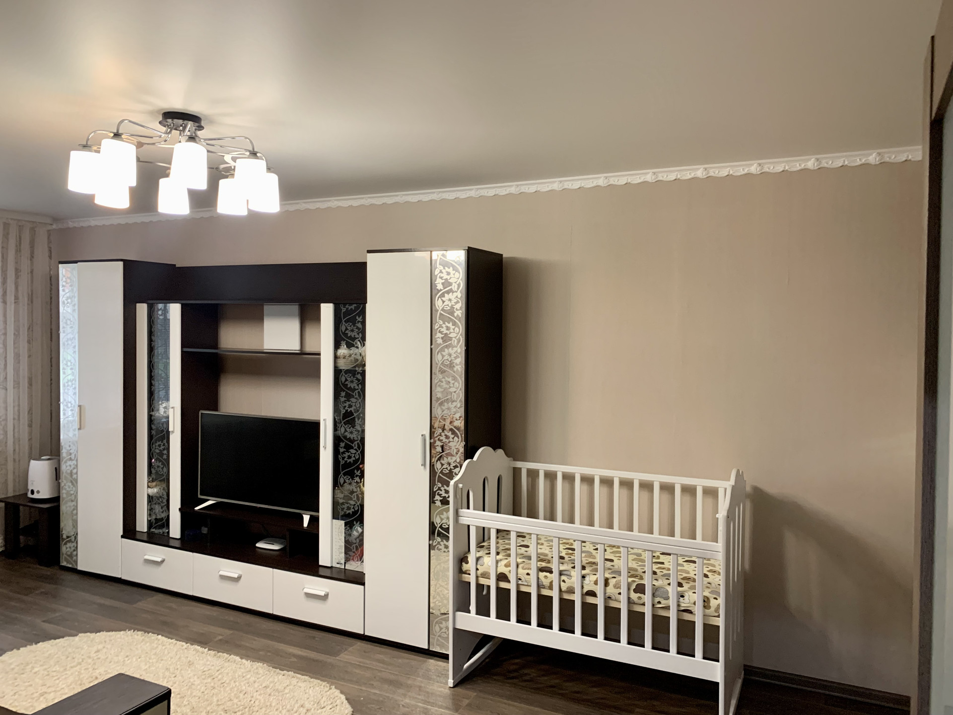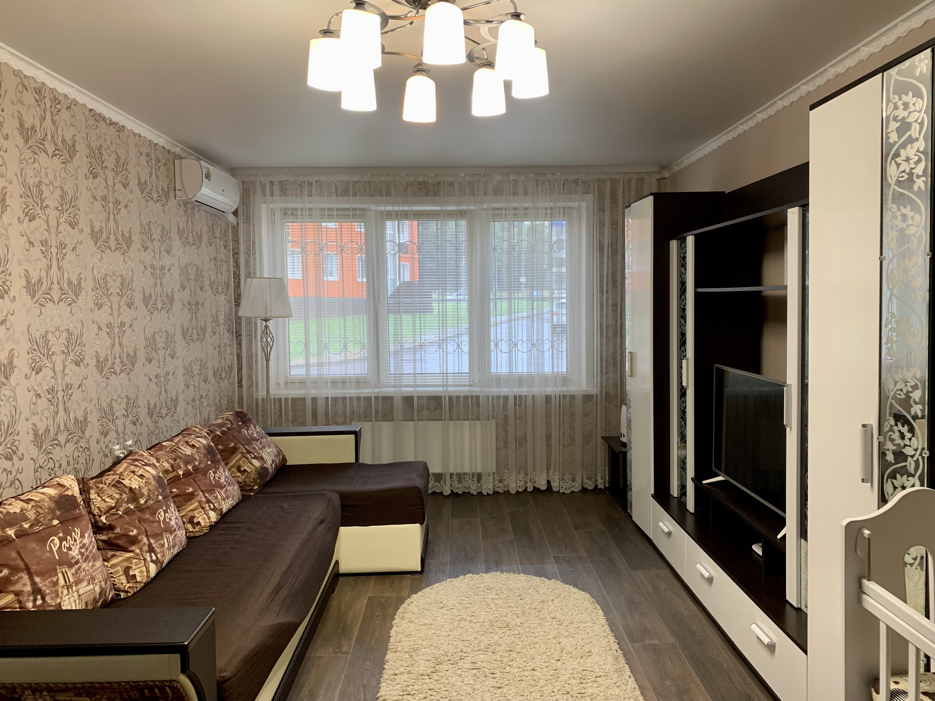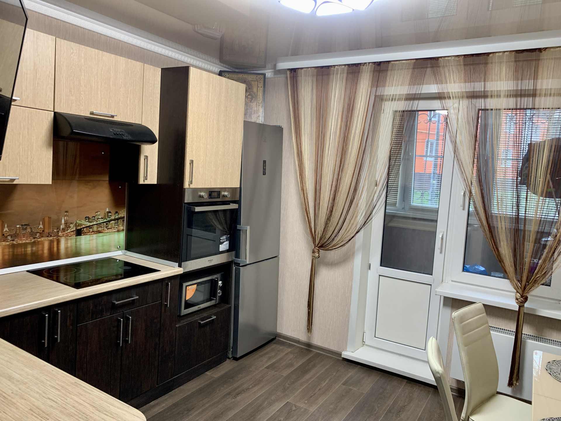 В квартире остаются: кухонный гарнитур, варочная панель, духовой шкаф, водонагреватель, кондиционер, шкаф-купе, стенка под телевизор, шкаф для хранения вещей на балконе.