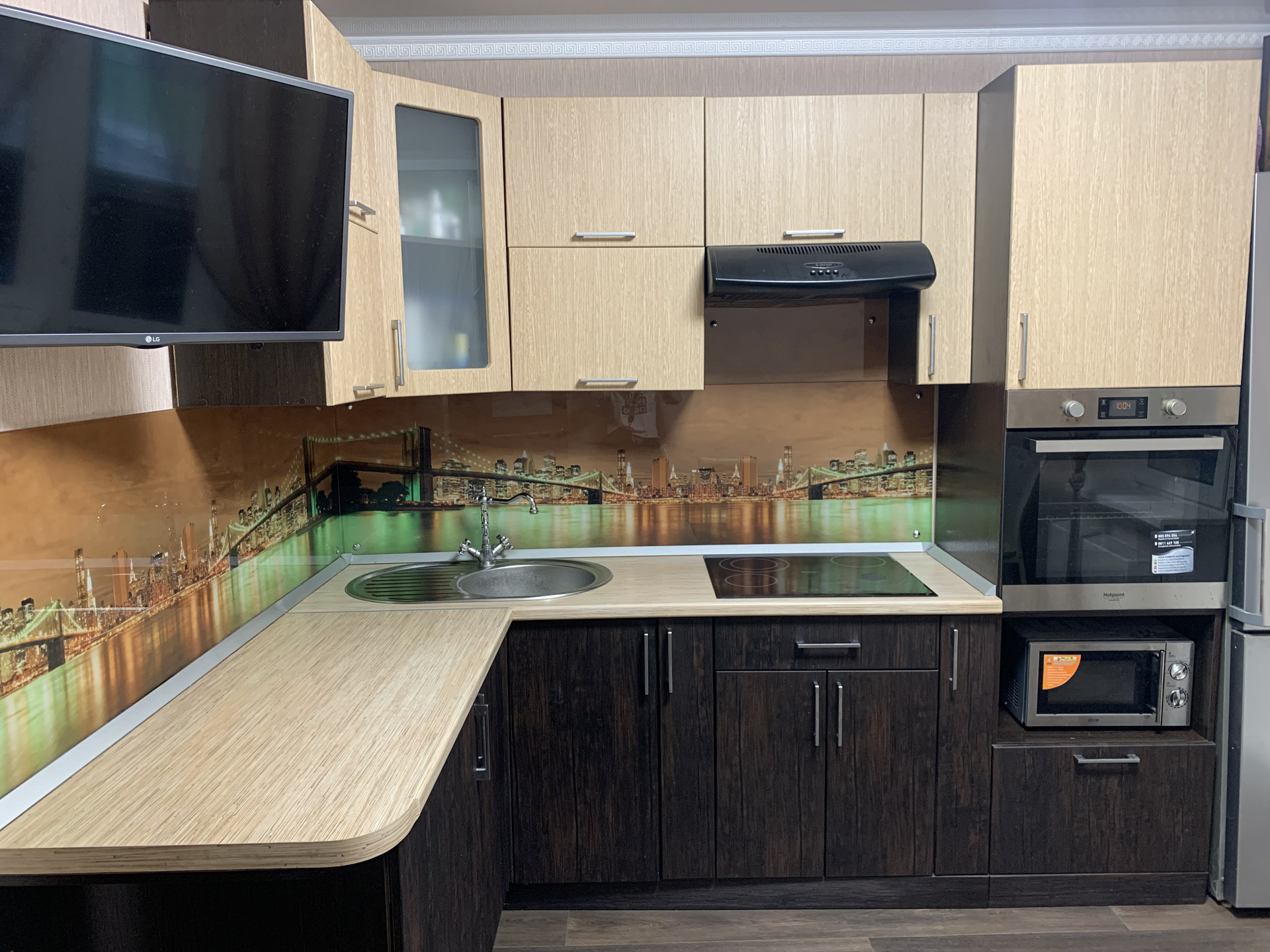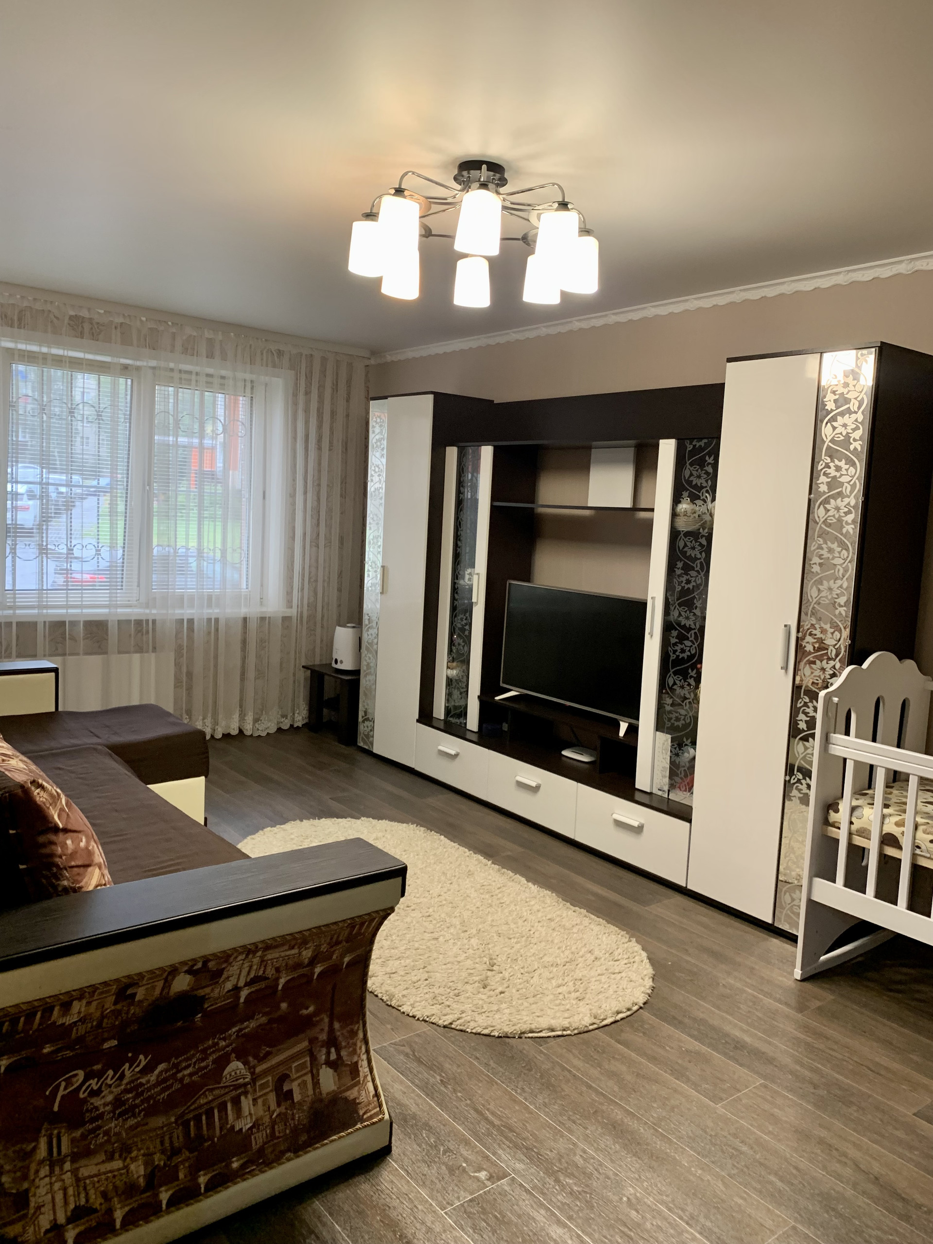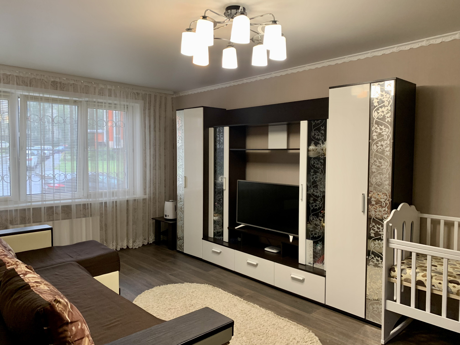 В квартире остаются: кухонный гарнитур, варочная панель, духовой шкаф, водонагреватель, кондиционер, шкаф-купе, стенка под телевизор, шкаф для хранения вещей на балконе.