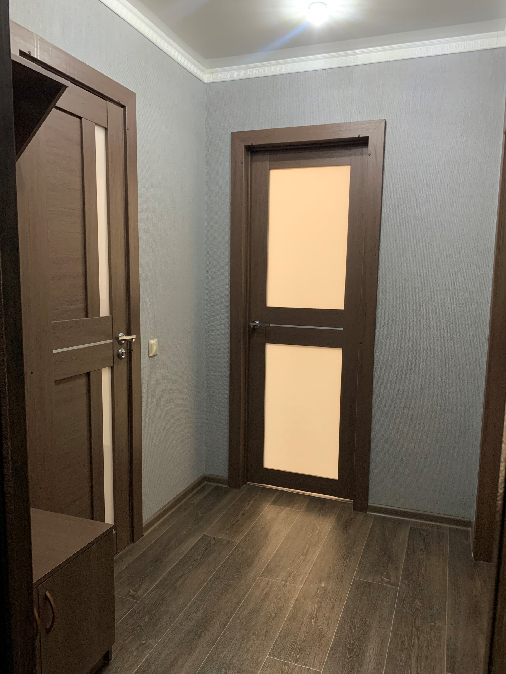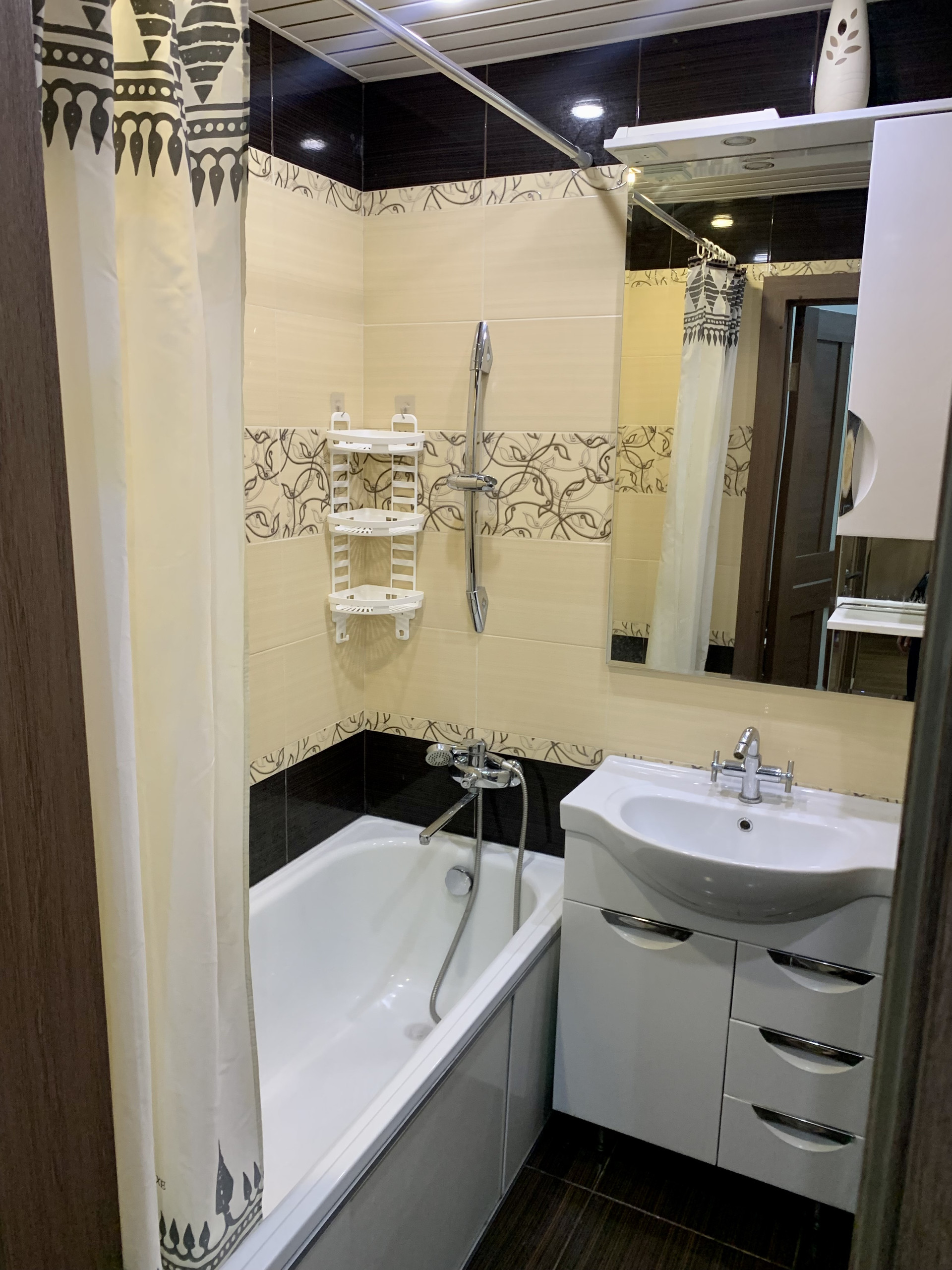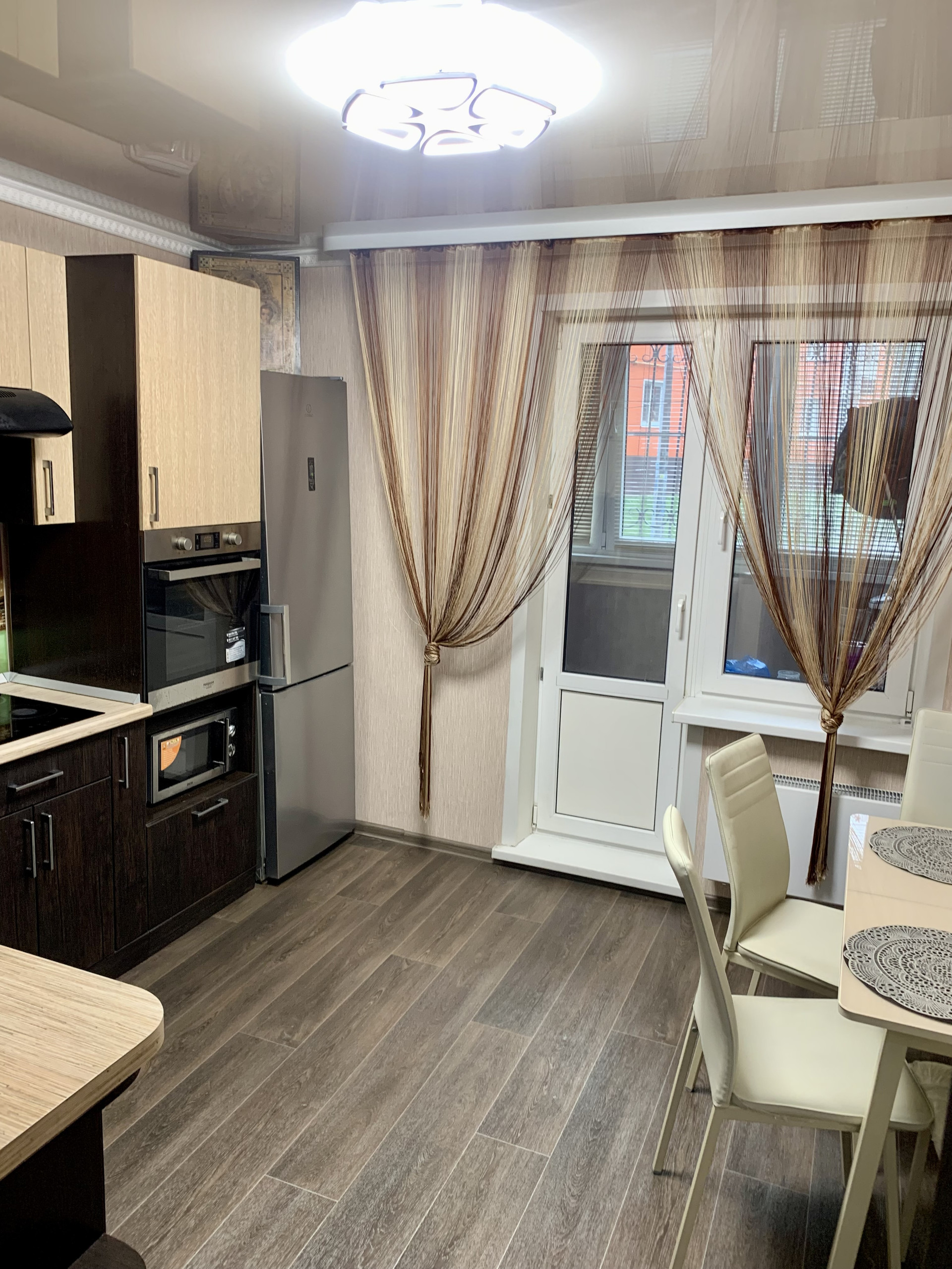 В квартире выполнен качественный ремонт: пластиковые окна, натяжные потолки, теплый пол (горизонтальная разводка отопления), батареи с функцией регулировки тепла, хорошие обои и линолеим, в ванной итальянская плитка.