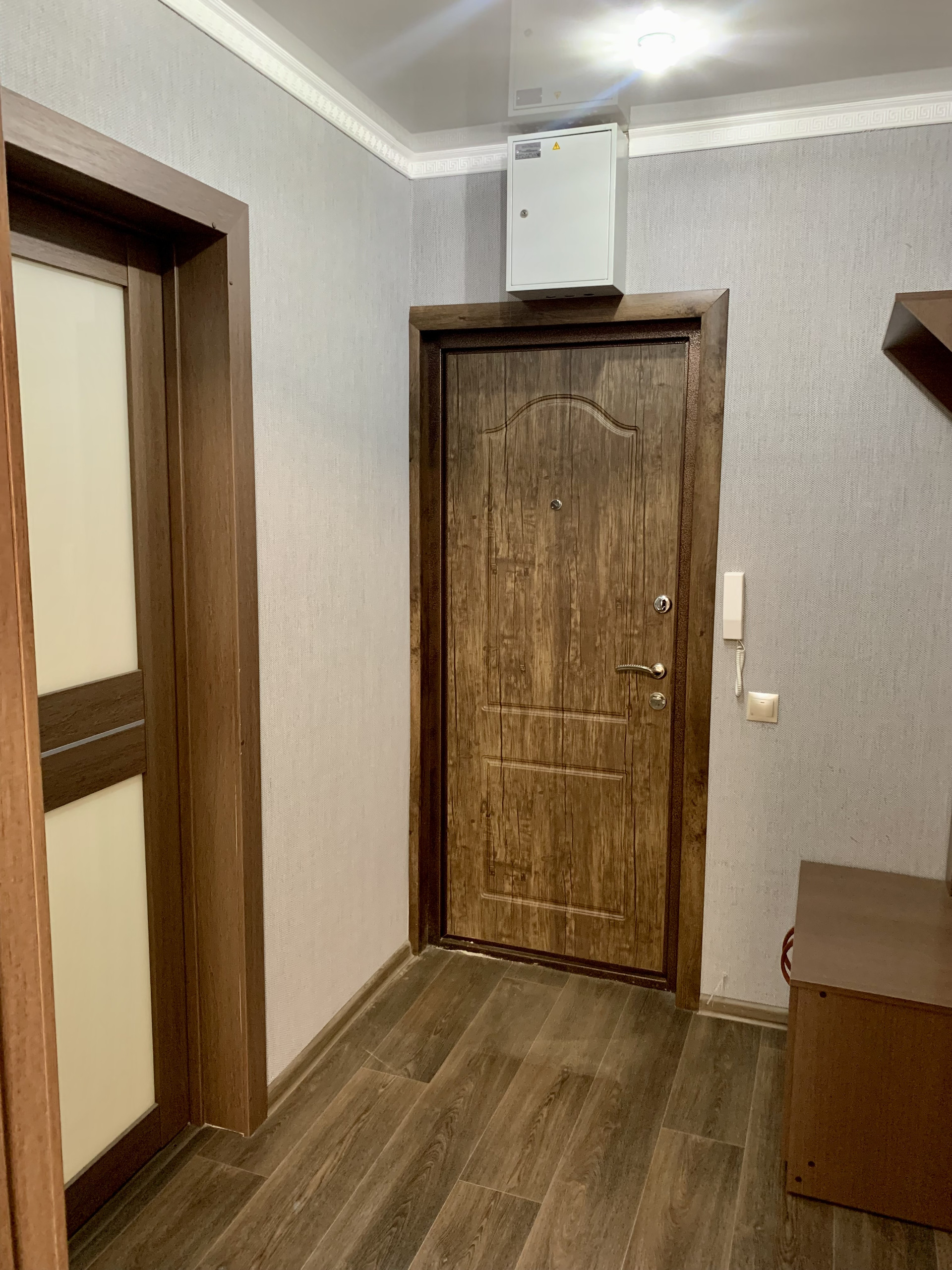 Высокий первый этаж, на окнах решетки. Коммунальные платежи за ЖКХ ниже, чем в других районах. Чистый подъезд, тамбурная дверь на этаже.