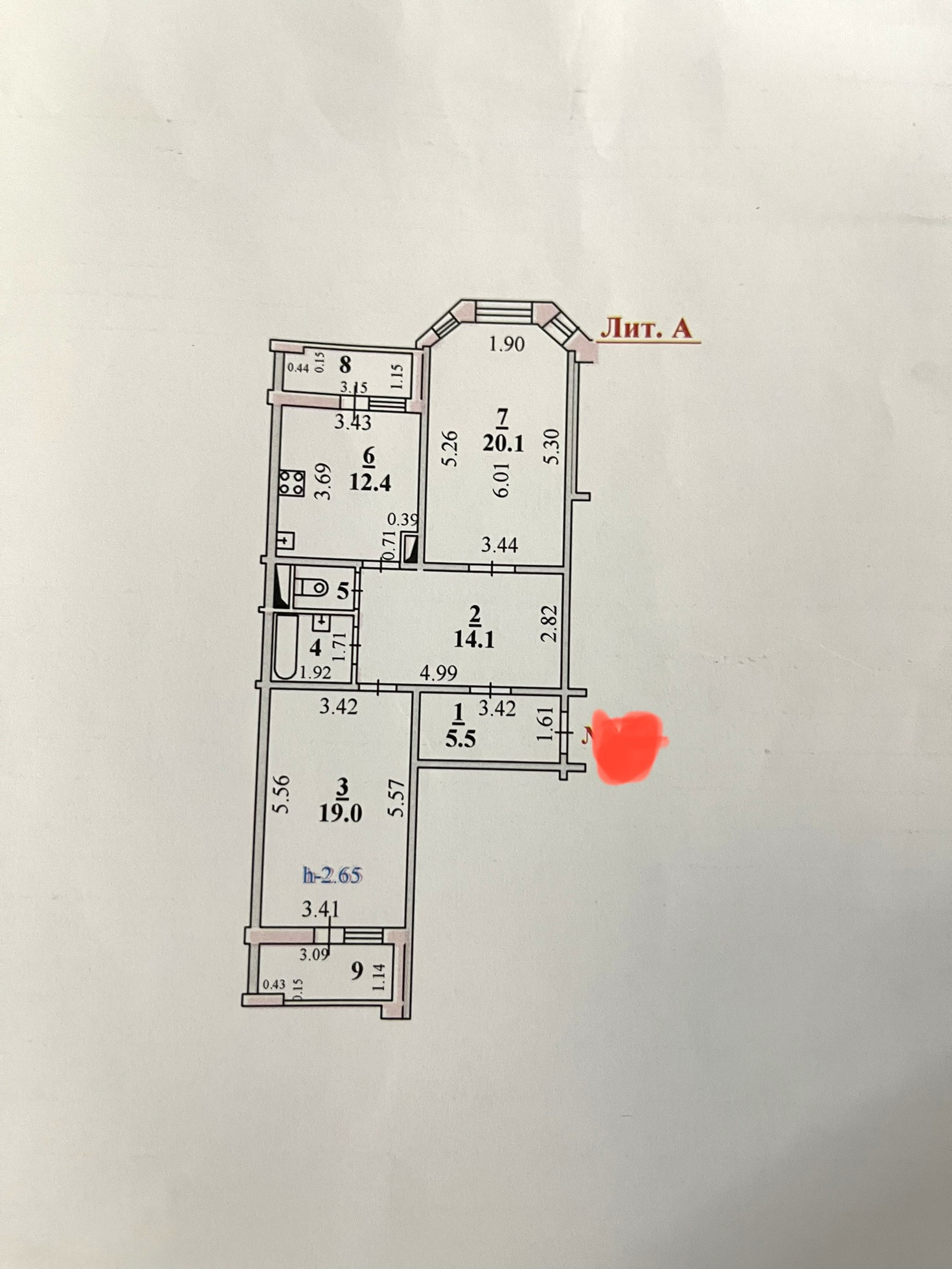 Общая площадь 75.9 м2