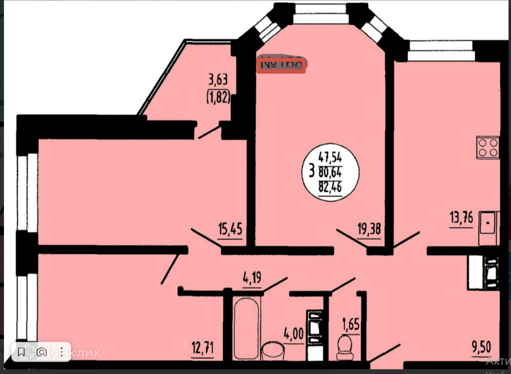 Общая площадь 79.6 м2