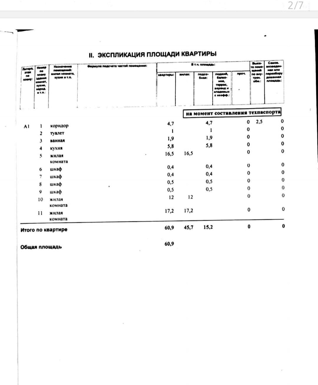 Общая площадь 60.9 м2