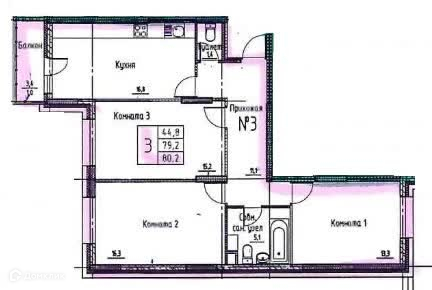 Общая площадь 80.2 м2