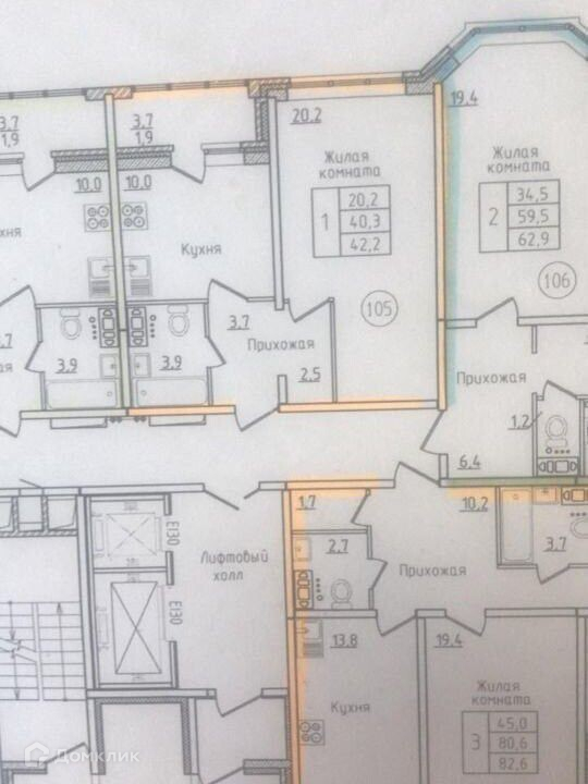 Общая площадь 42.4 м2