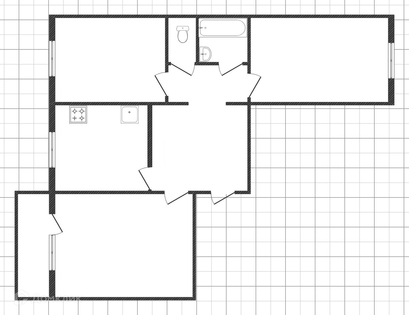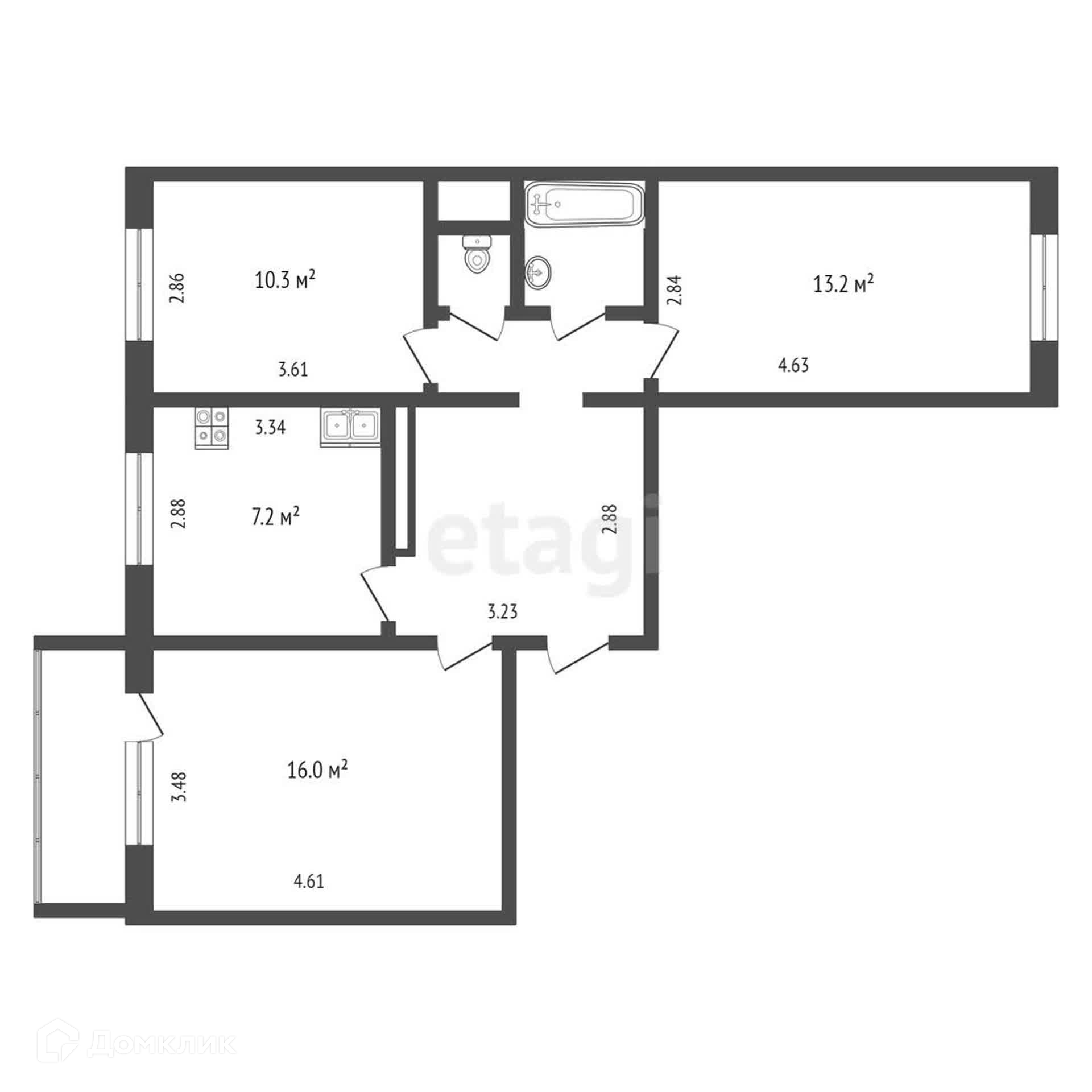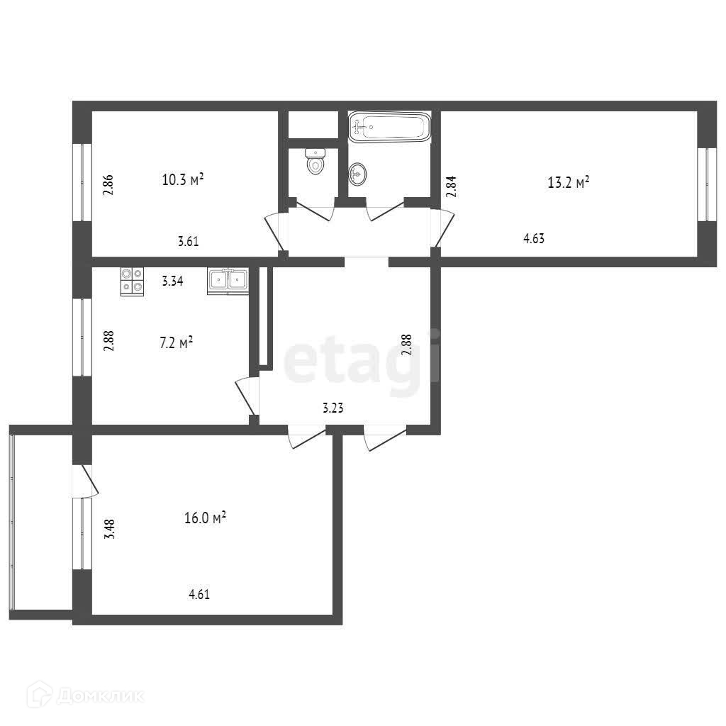 Квартира 3-ех комнатная, не угловая, просторная кухня, балкон застеклён, установлены счётчики приборов учёта, пластиковые окна, на 4-ом этаже 5 этажного дома, в подъезде всего 10 квартир.
