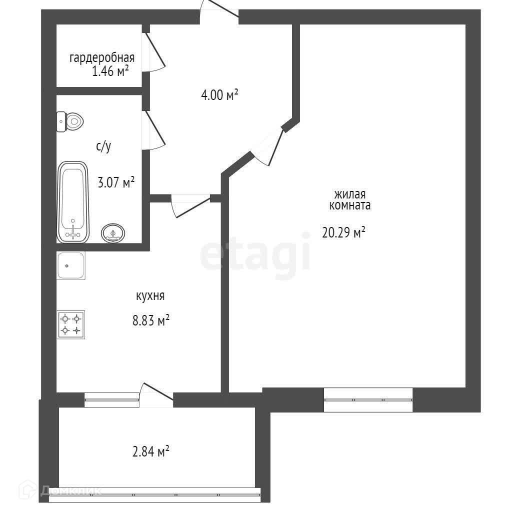 Балкон, лоджия 1 балкон