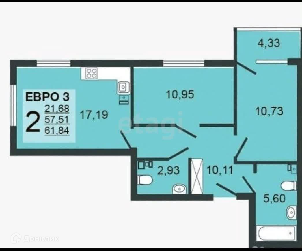 Общая площадь 57.8 м2