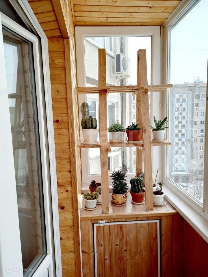 Балкон застеклён, отделан вагонкой. Санузел в плитке.