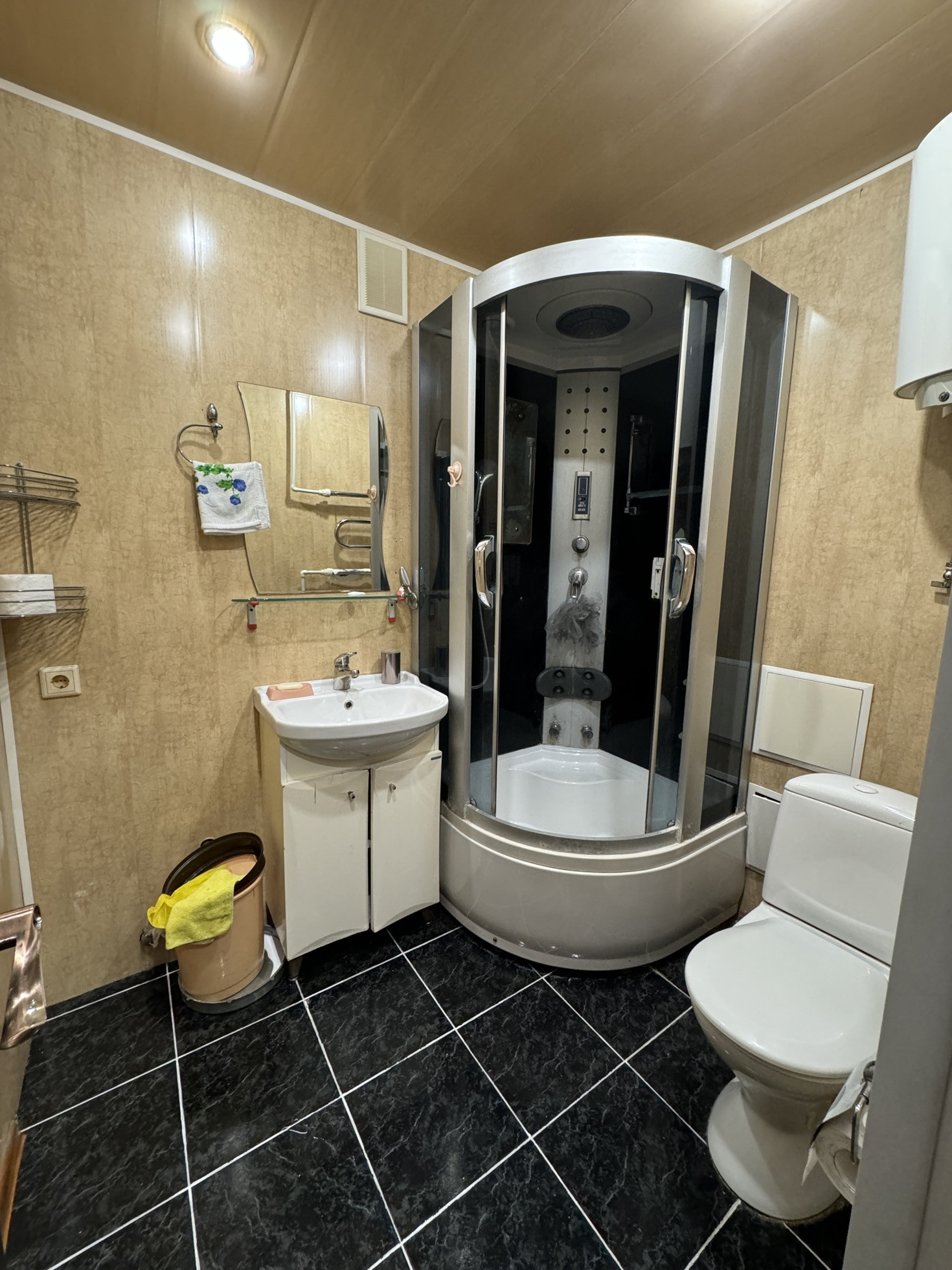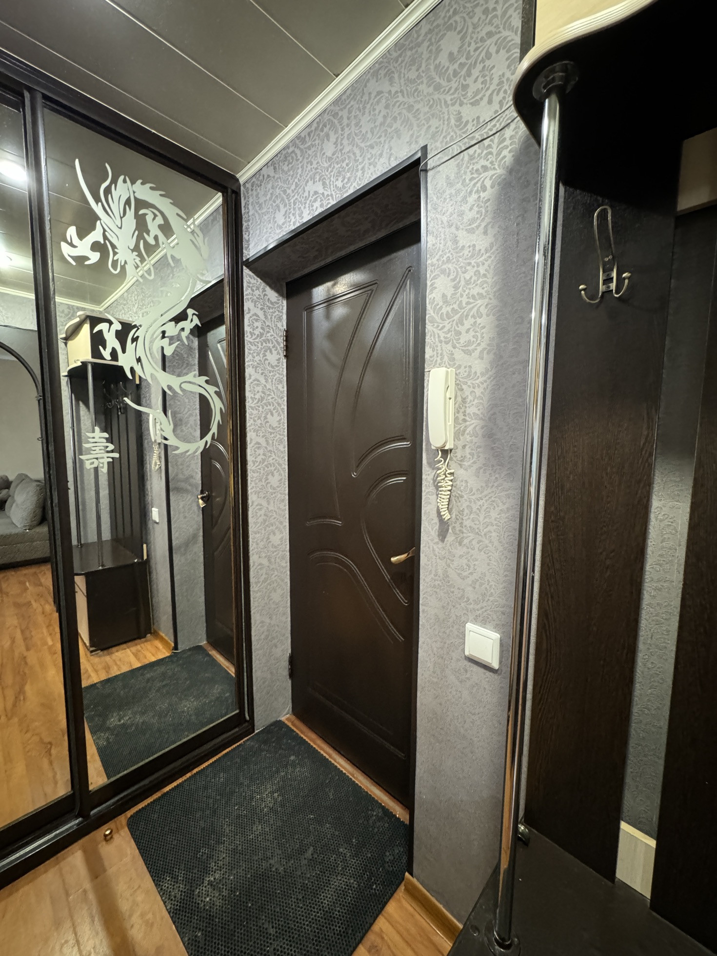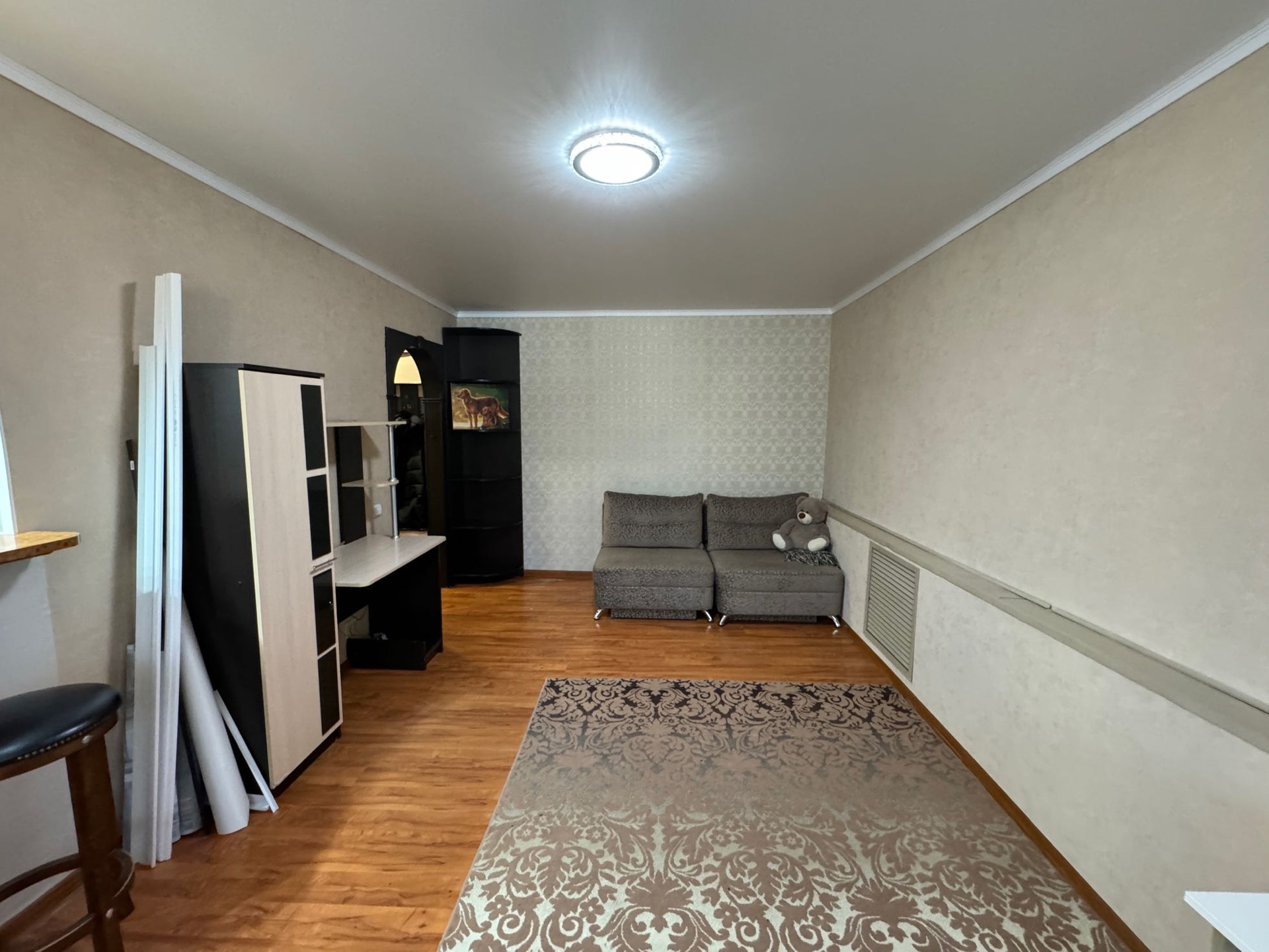 В квартире остается вся мебель. В прихожей шкаф-купе, кухонный гарнитур, диван, письменный стол, кондиционер, водонагреватель.