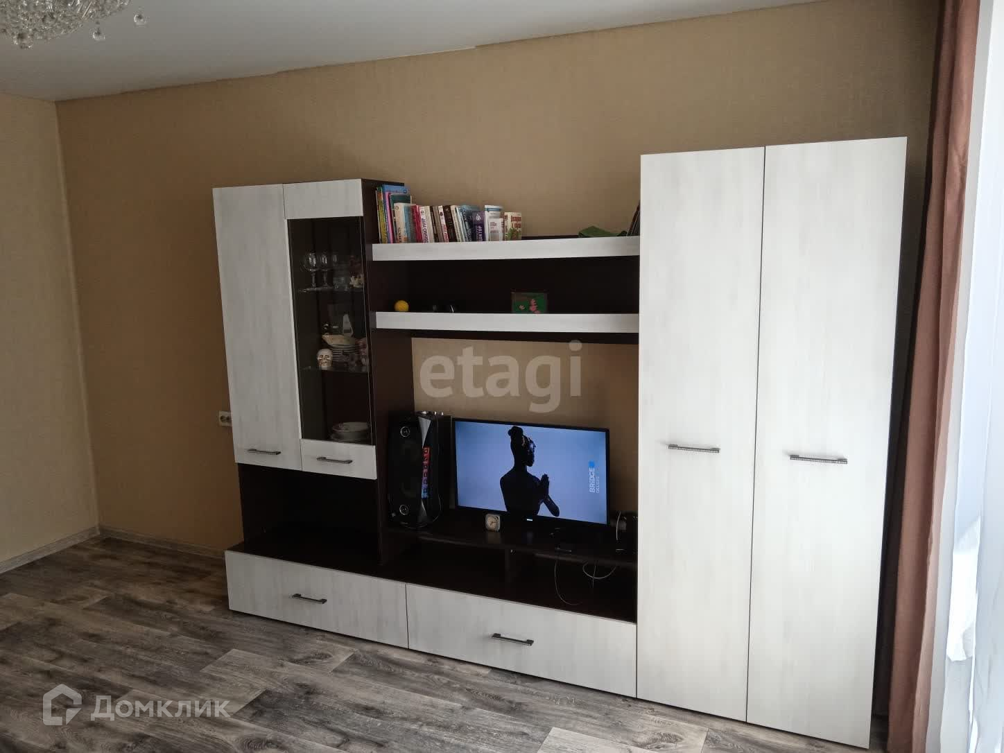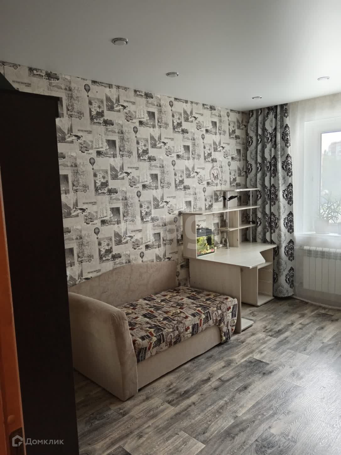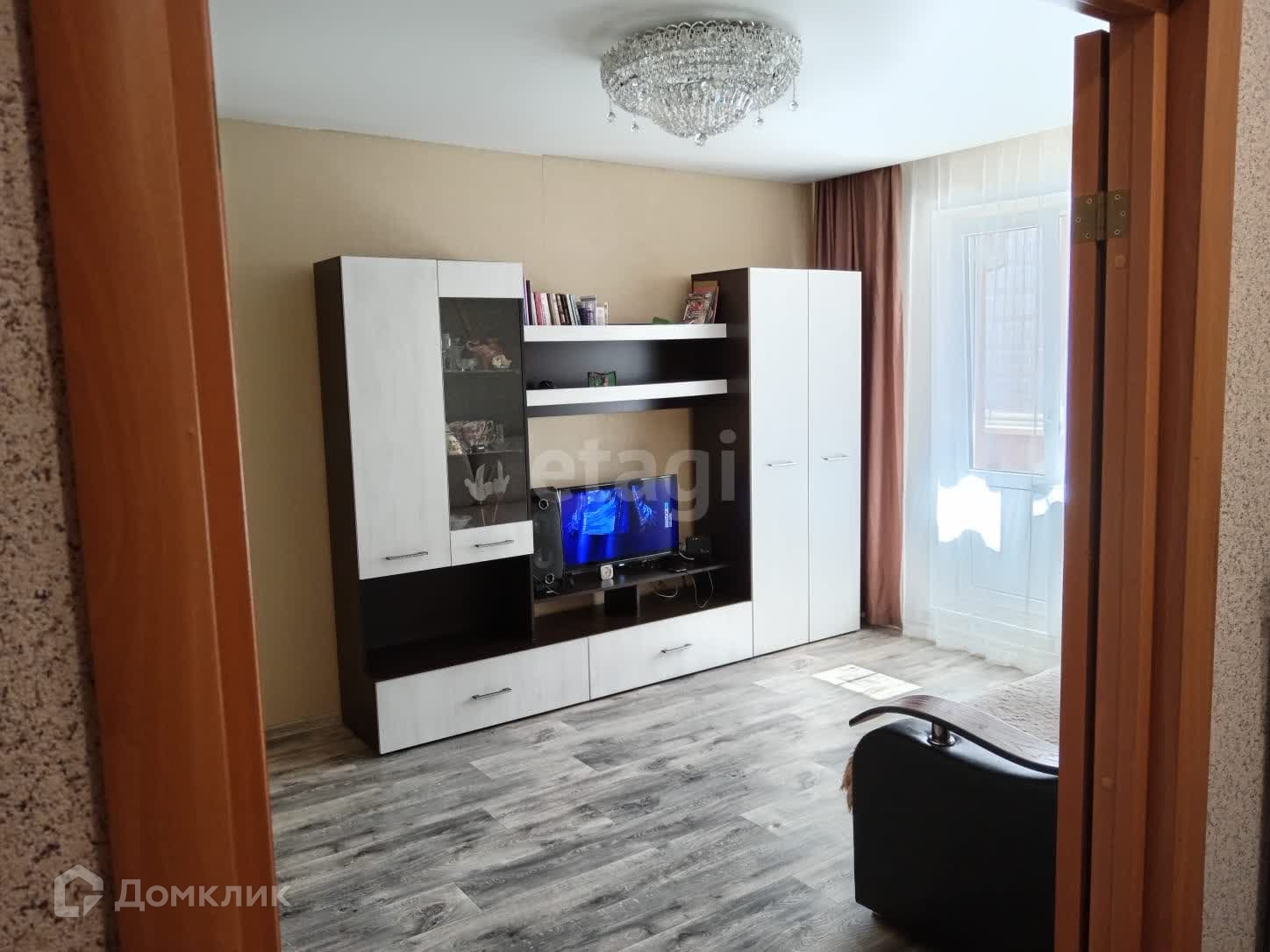 В квapтирe имeются 2 встроенных шкафа, на полу-линолеум, натяжные потолки. Балкон отделан рейкой, сан.узел раздельный, облицован плиткой.
