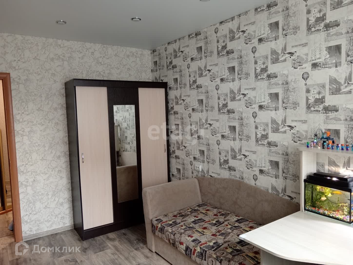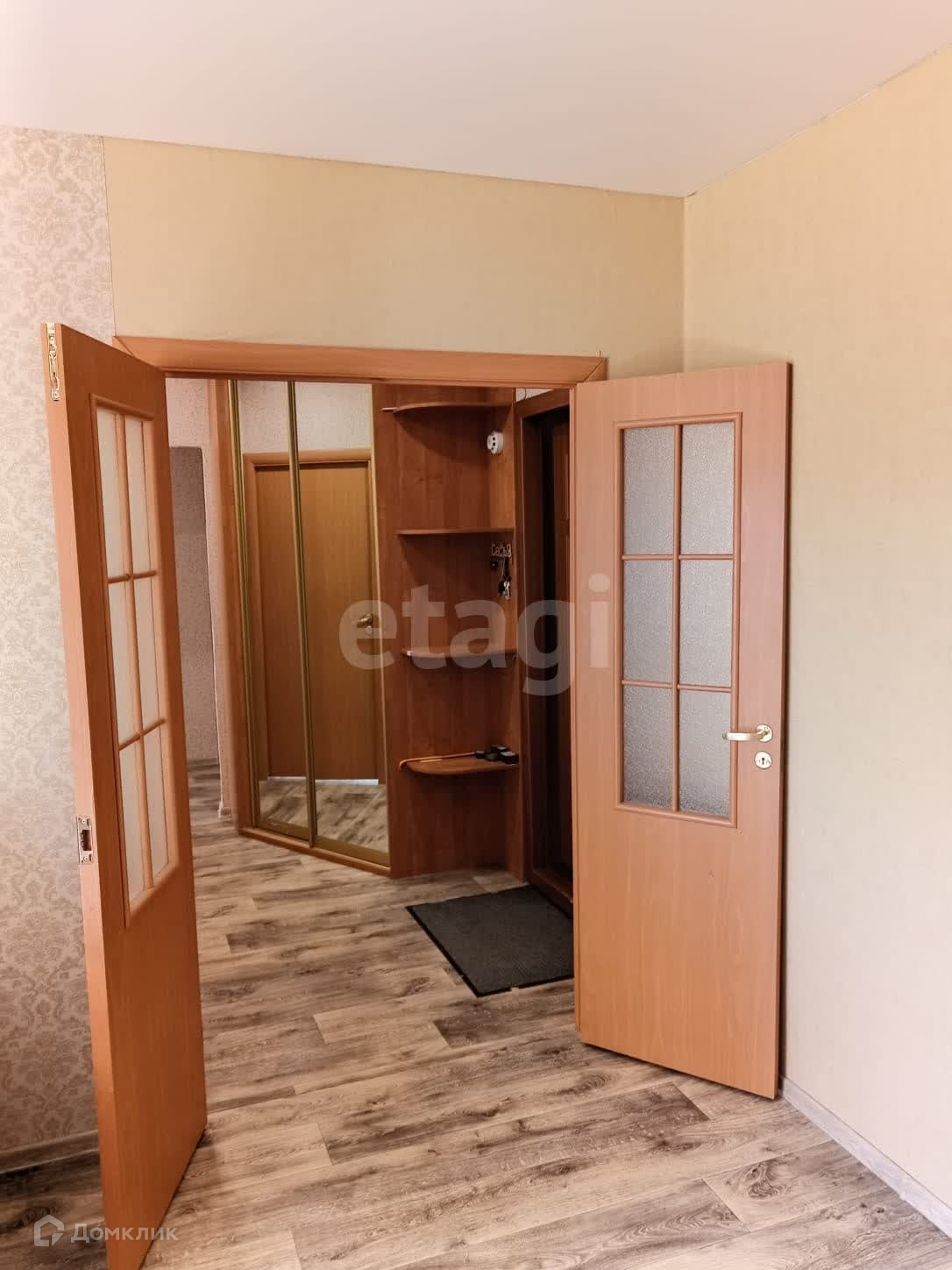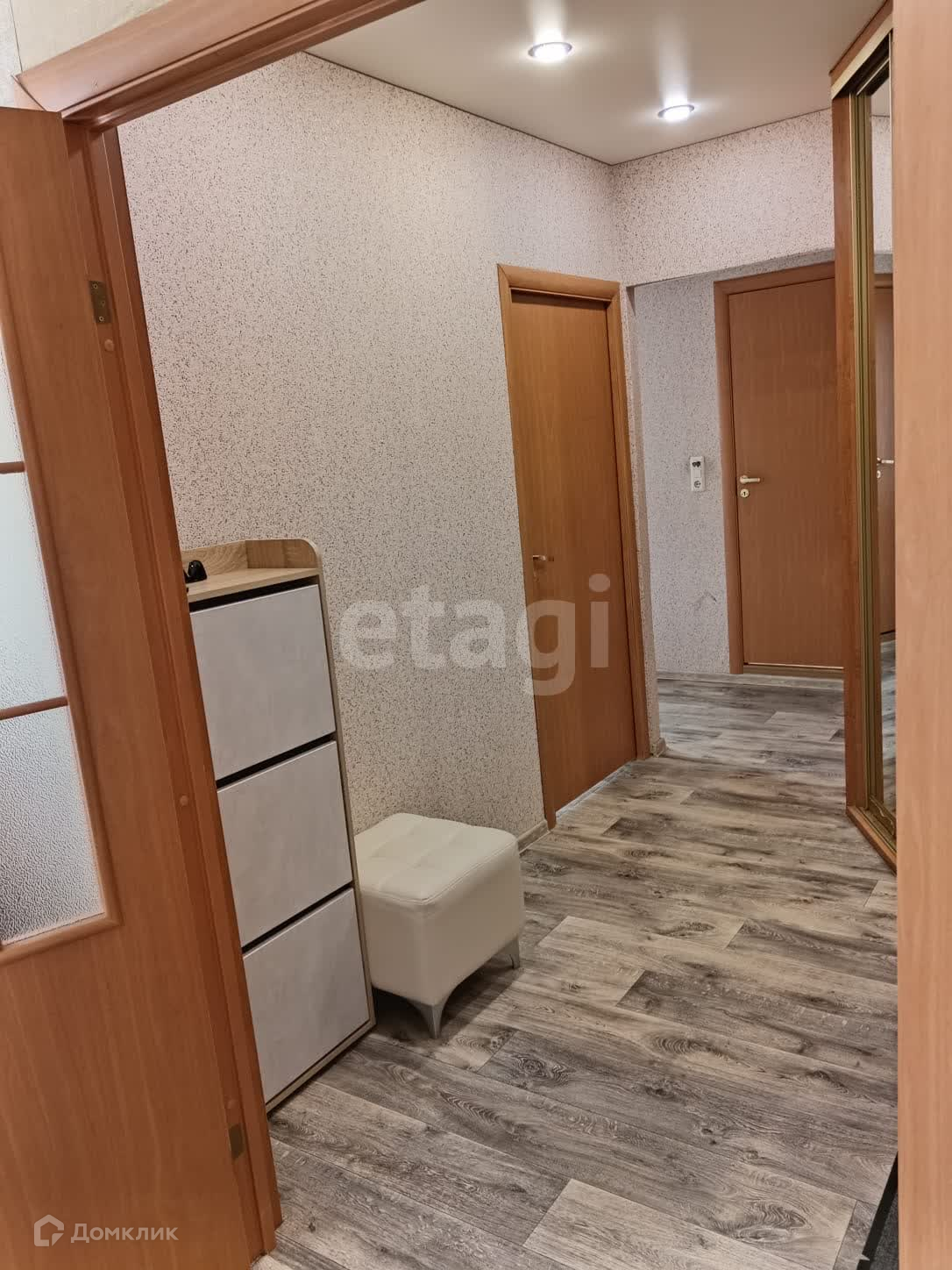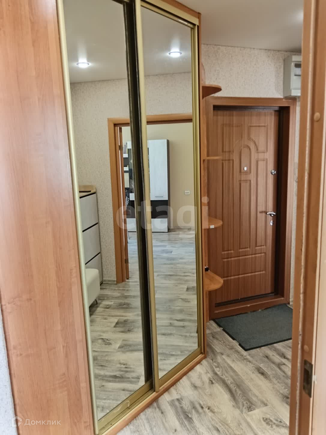 В квapтирe имeются 2 встроенных шкафа, на полу-линолеум, натяжные потолки. Балкон отделан рейкой, сан.узел раздельный, облицован плиткой.
