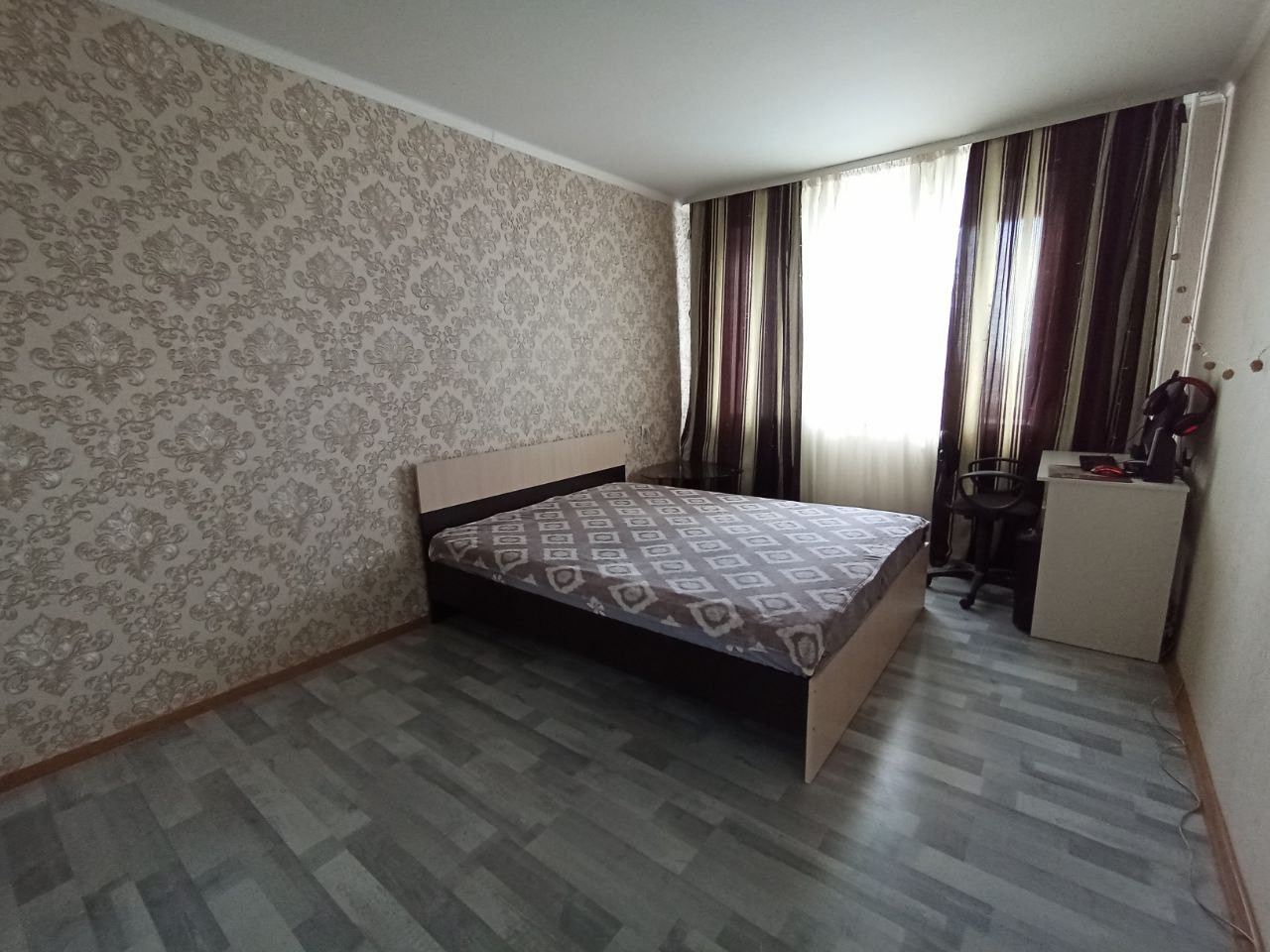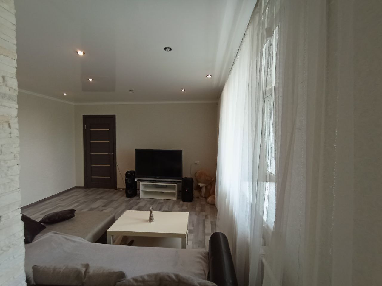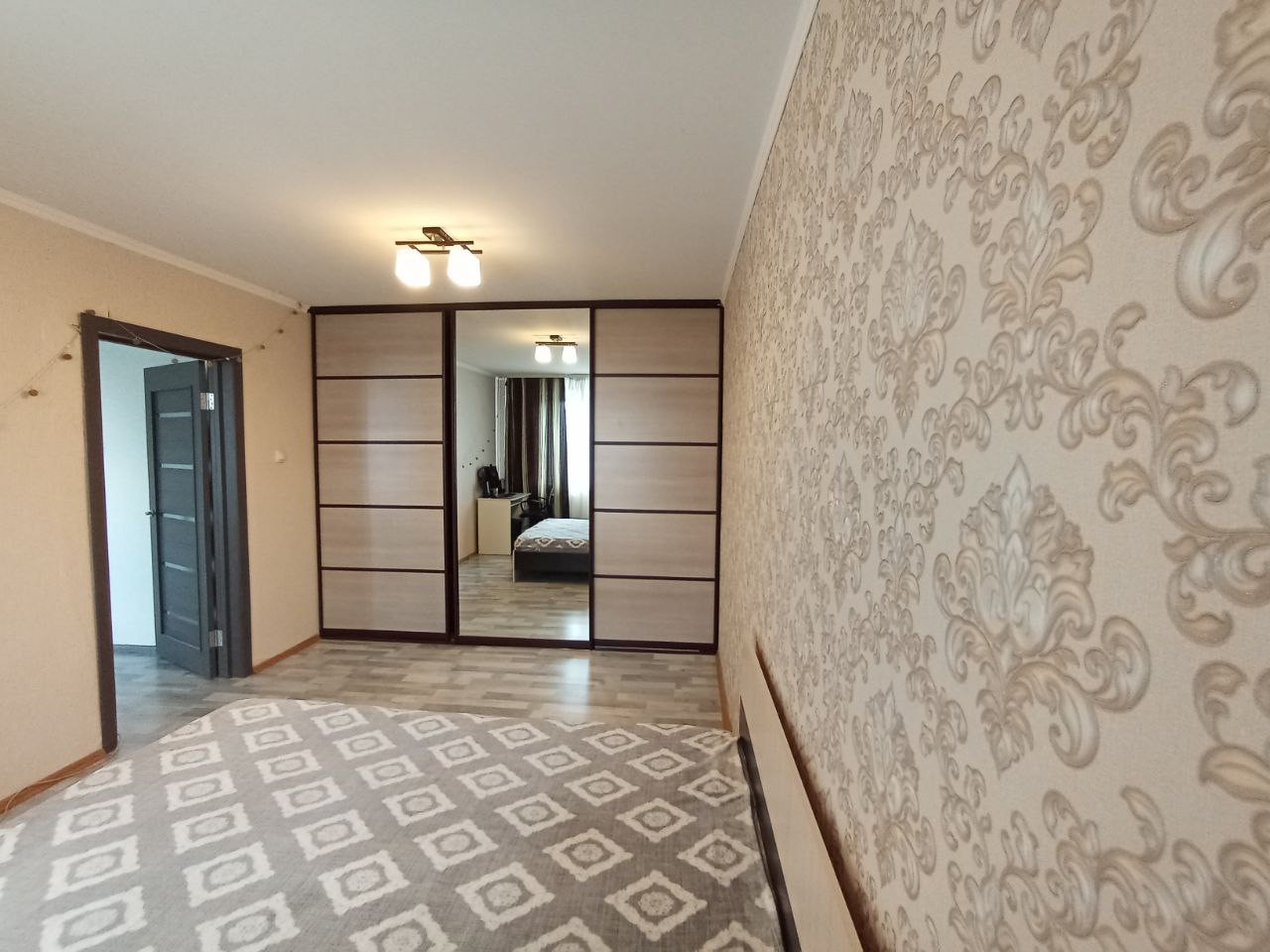 В просторной спальни имеется просторный встраиваемый шкаф для хранения вещей, что позволит сохранить пространство от лишнего .