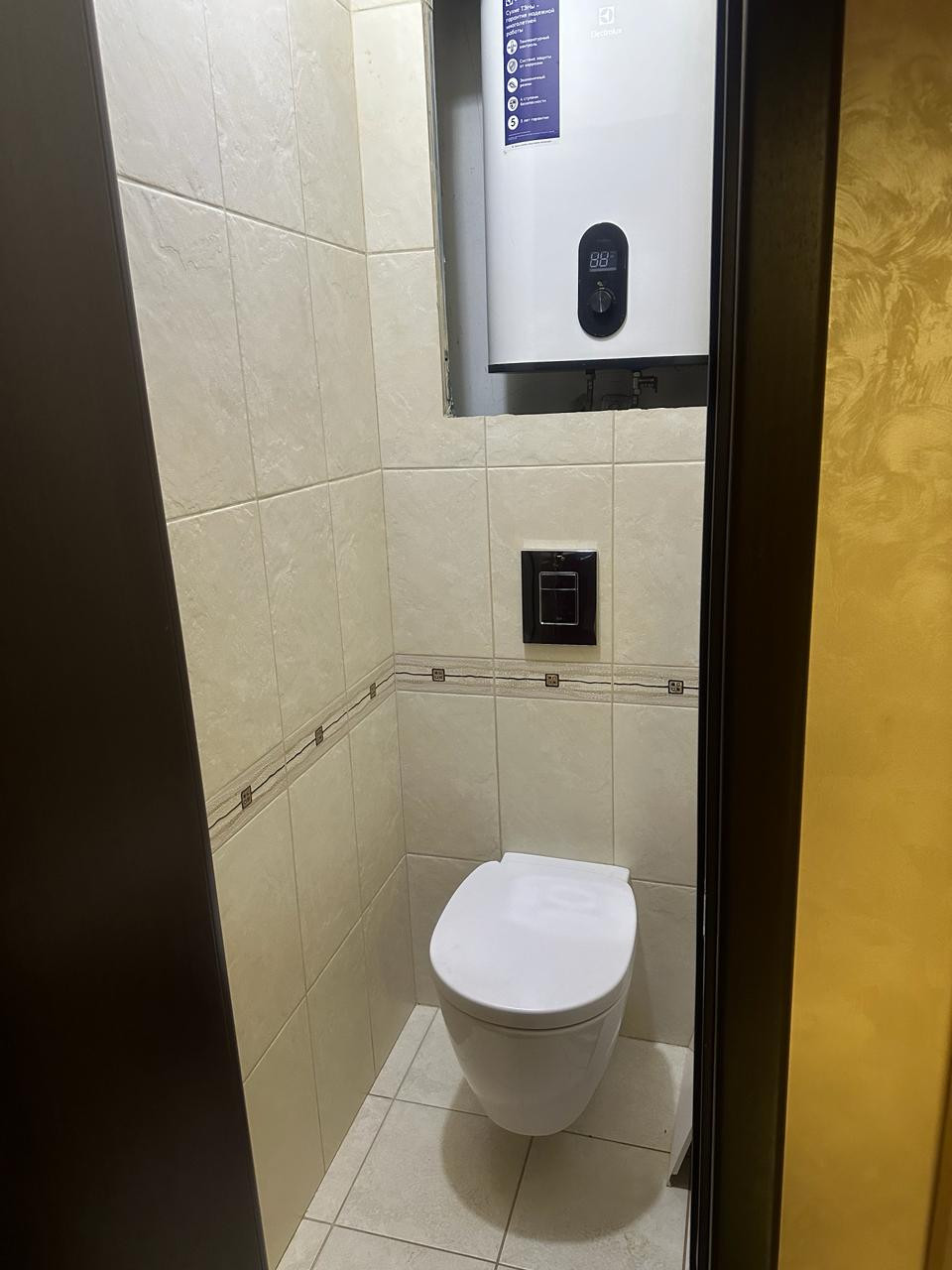 Санузел раздельный, отделан плиткой, водонагреватель.