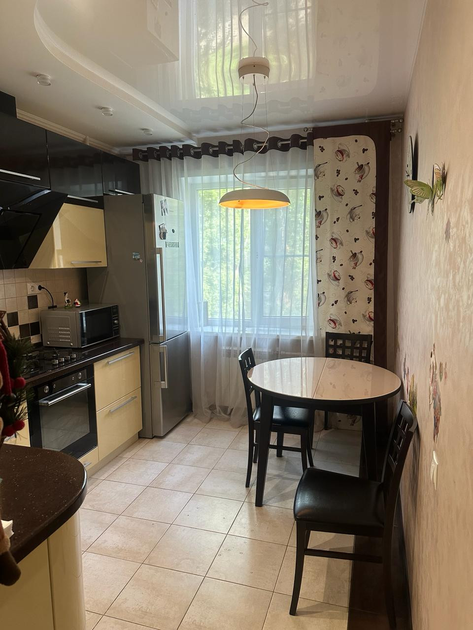 Состояние отличное: потолки гипсокартон с натяжным полотном-разноуровневая, электрика заменена. Стены – выровнены, декоративная штукатурка. Окна пластиковые.