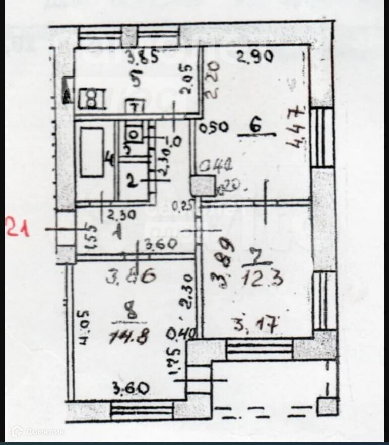 Жилая площадь  41,1 м2