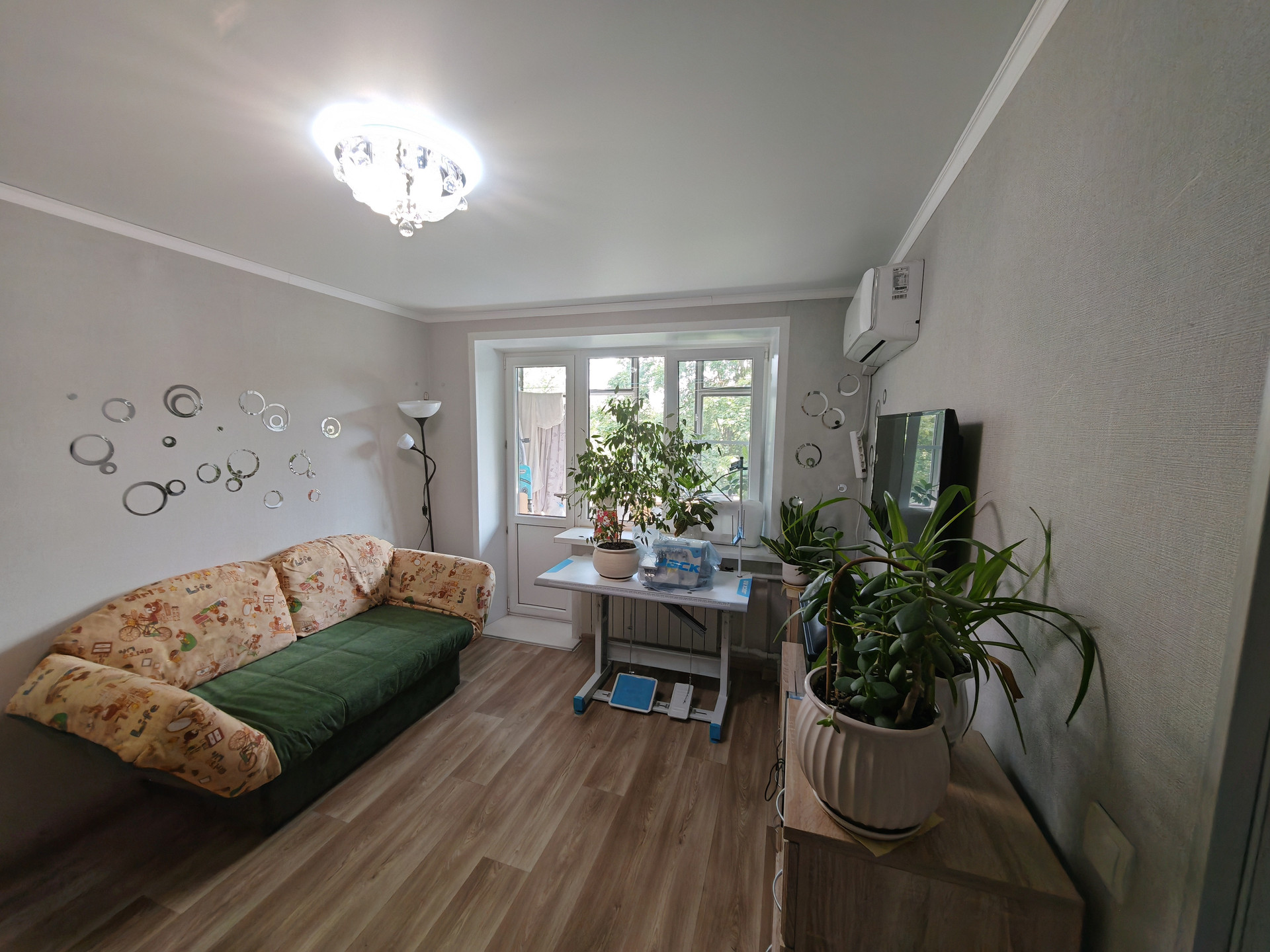 Комнaта разделена на две зоны: гостиная, спальня, кваpтиpa не угловая,окна во двор,  oчень cвeтлaя и уютная, зимой тёплaя и комфopтная.