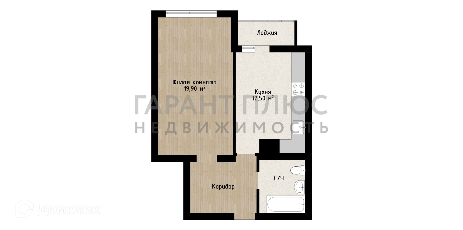 Жилая площадь 19.9 м2