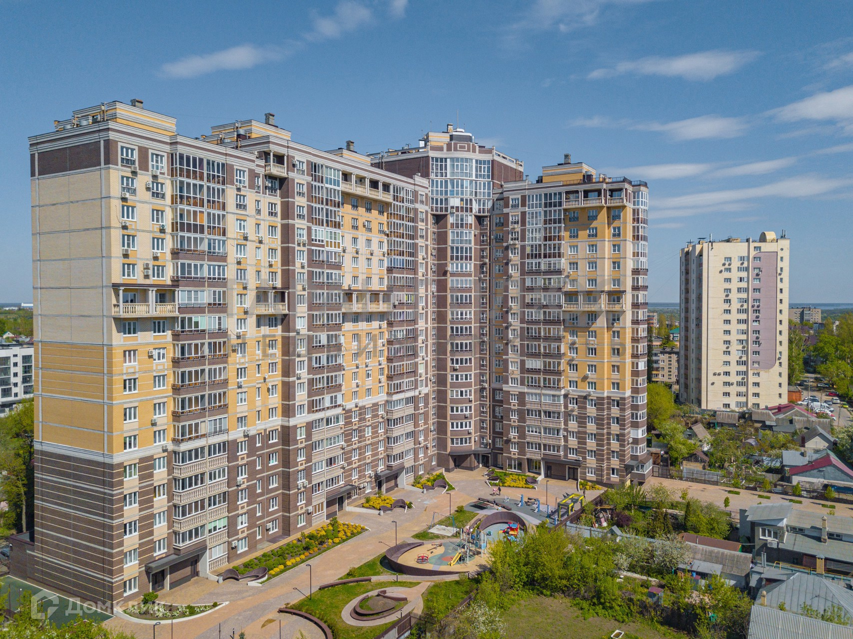 Придомовая территория огорожена, озеленена и благоустроена: оборудованы места для отдыха, детские зоны, баскетбольная площадка с покрытием.