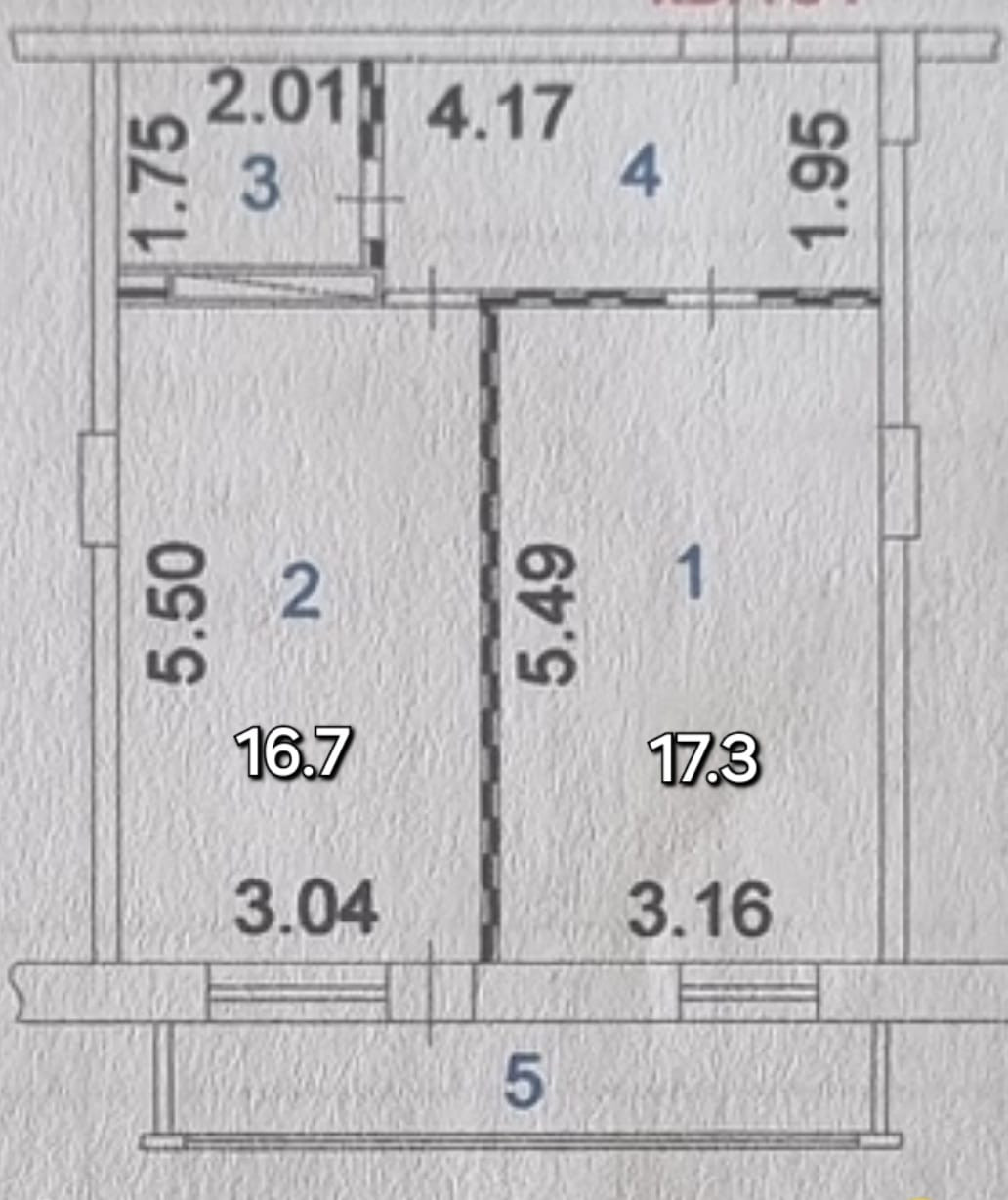 Жилая площадь 17.3 м2