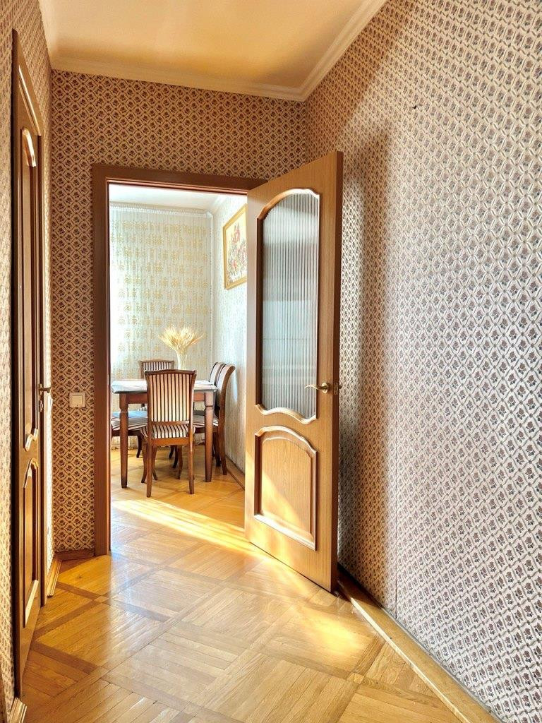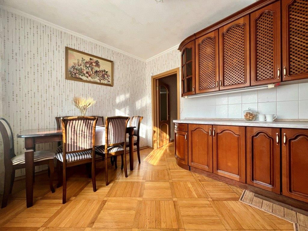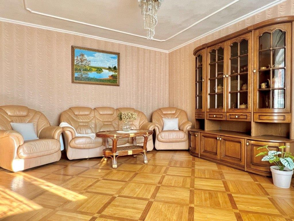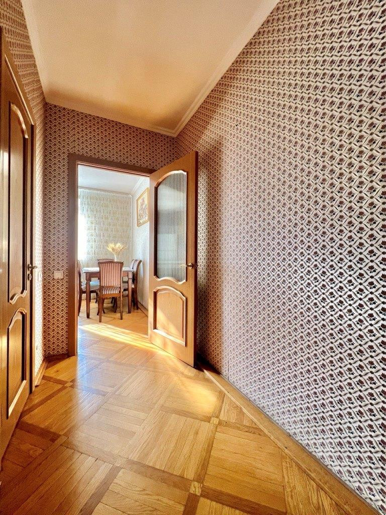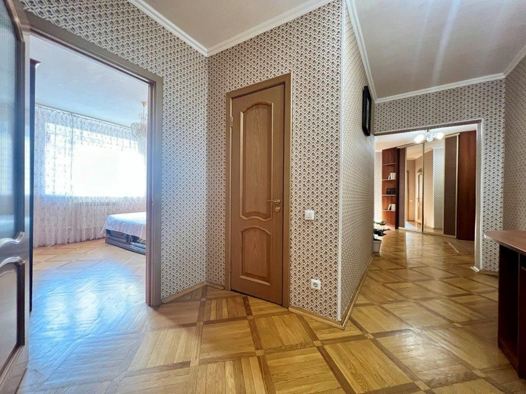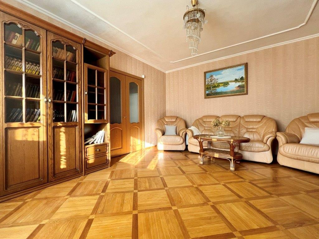 Во всей квартире паркет (дуб), батареи биметалл, окна ПВХ, качественные межкомнатные двери, сигнализация.