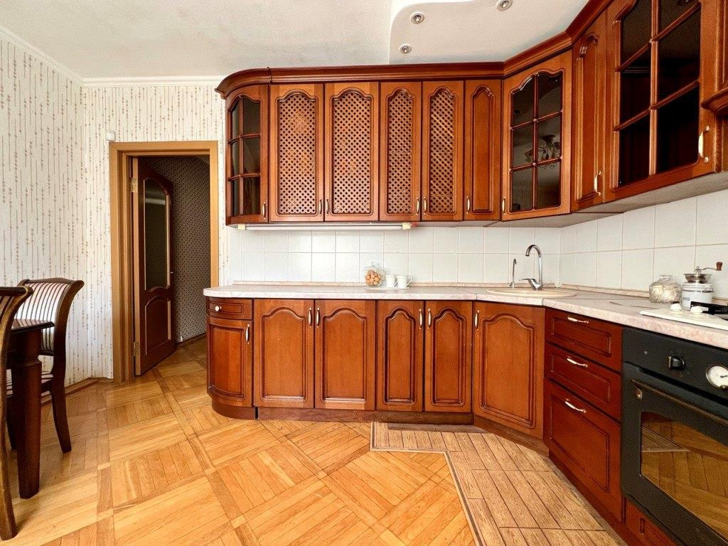 В квартире остается встроенная кухня (мебель Черноземья (массив)), варочная поверхность Ariston, вытяжка, встроенные шкафы в прихожей и кондиционер DeLonghi для Вашего удобства.