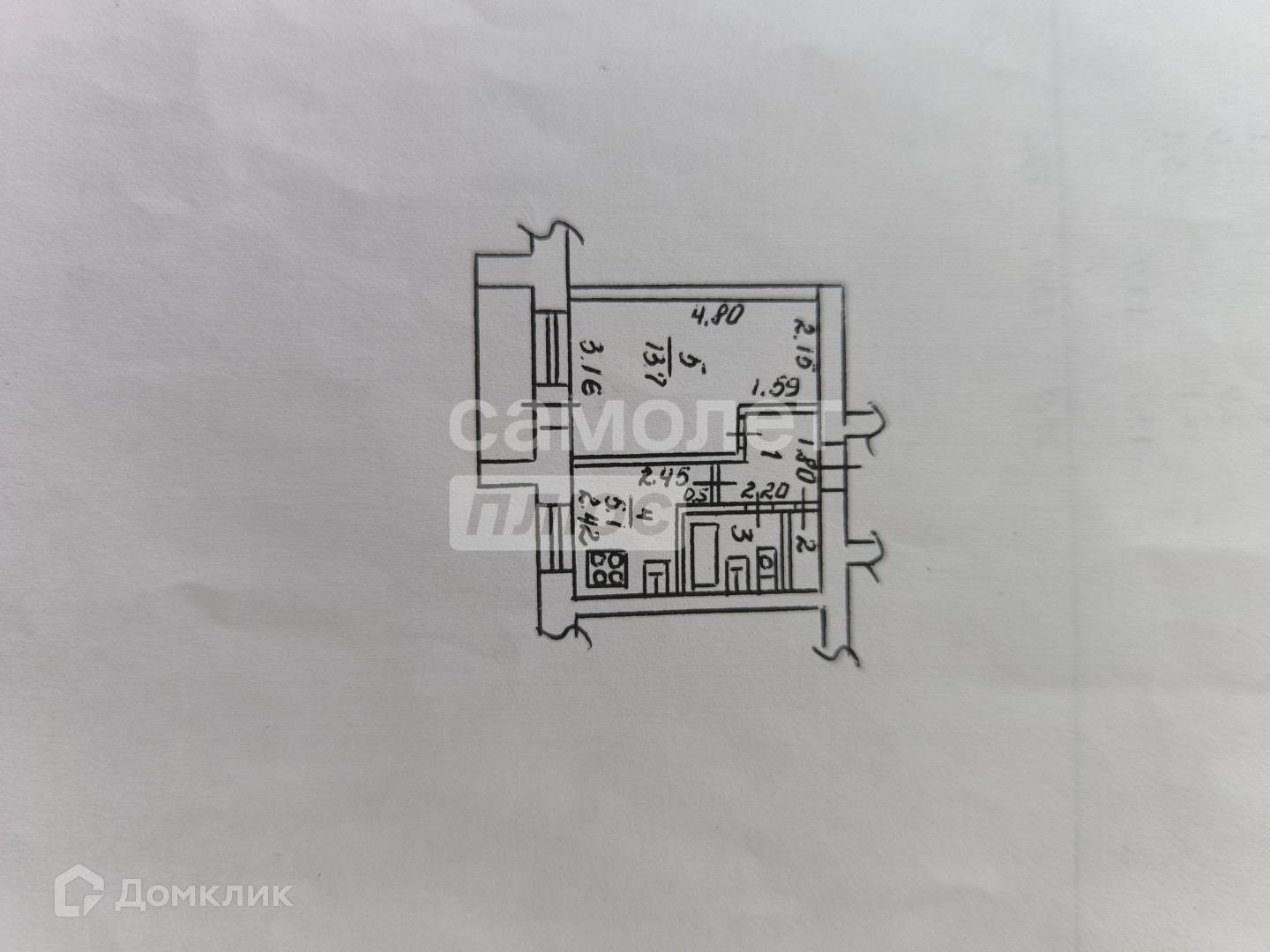 Жилая площадь 13.7 м2