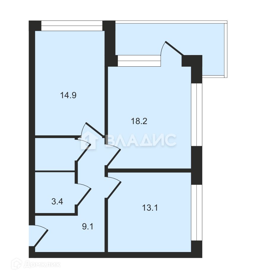 Жилая площадь 33.1 м2