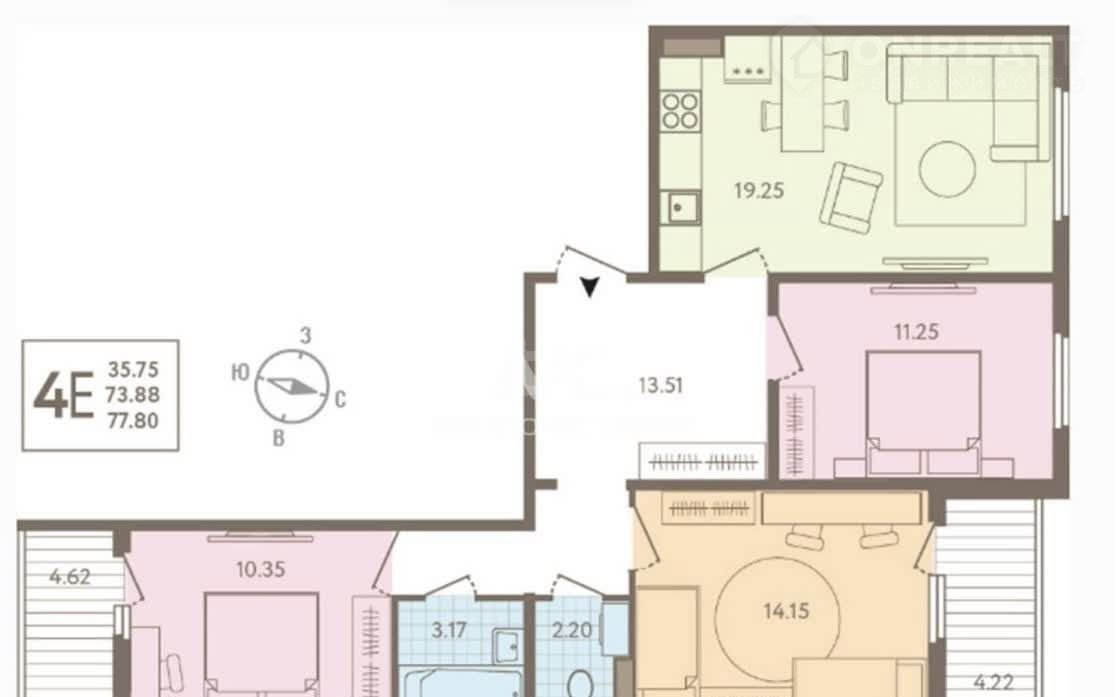 Общая площадь 78 м2