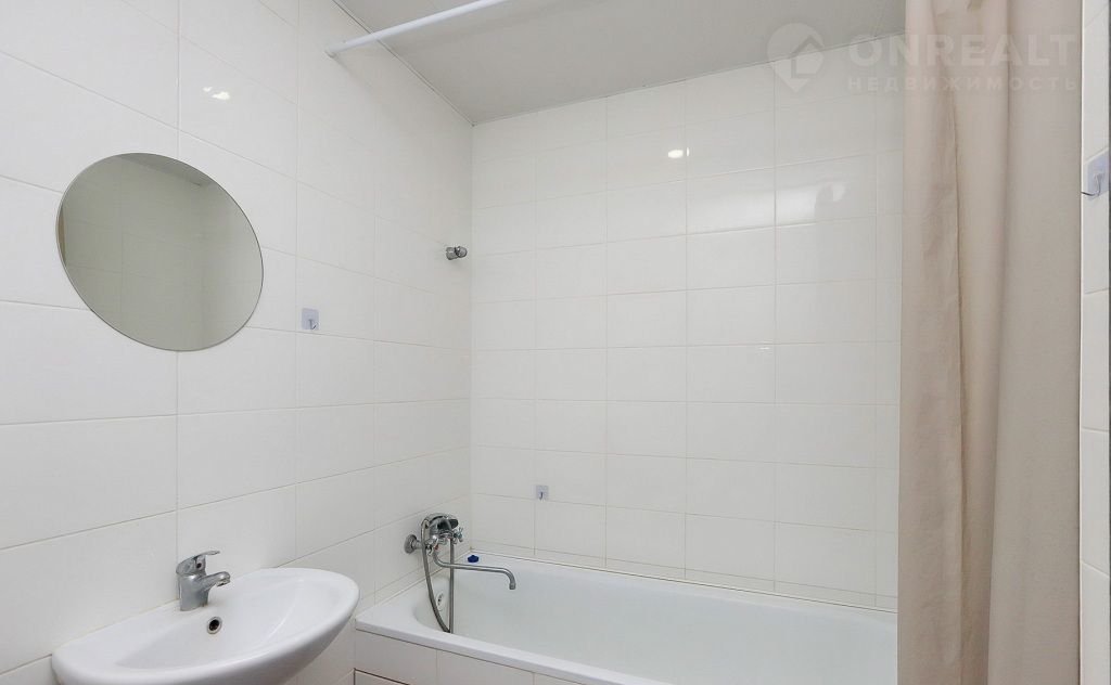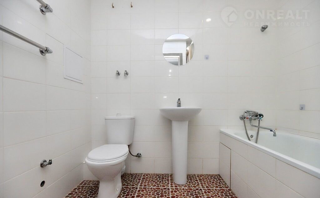 Санузeл cовмещен, отделан кафелем. Сделаны выводы под стиральную машину и водонагреватель.