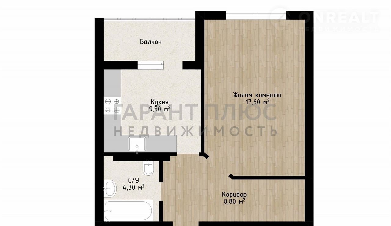 Общая площадь 43.6 м2