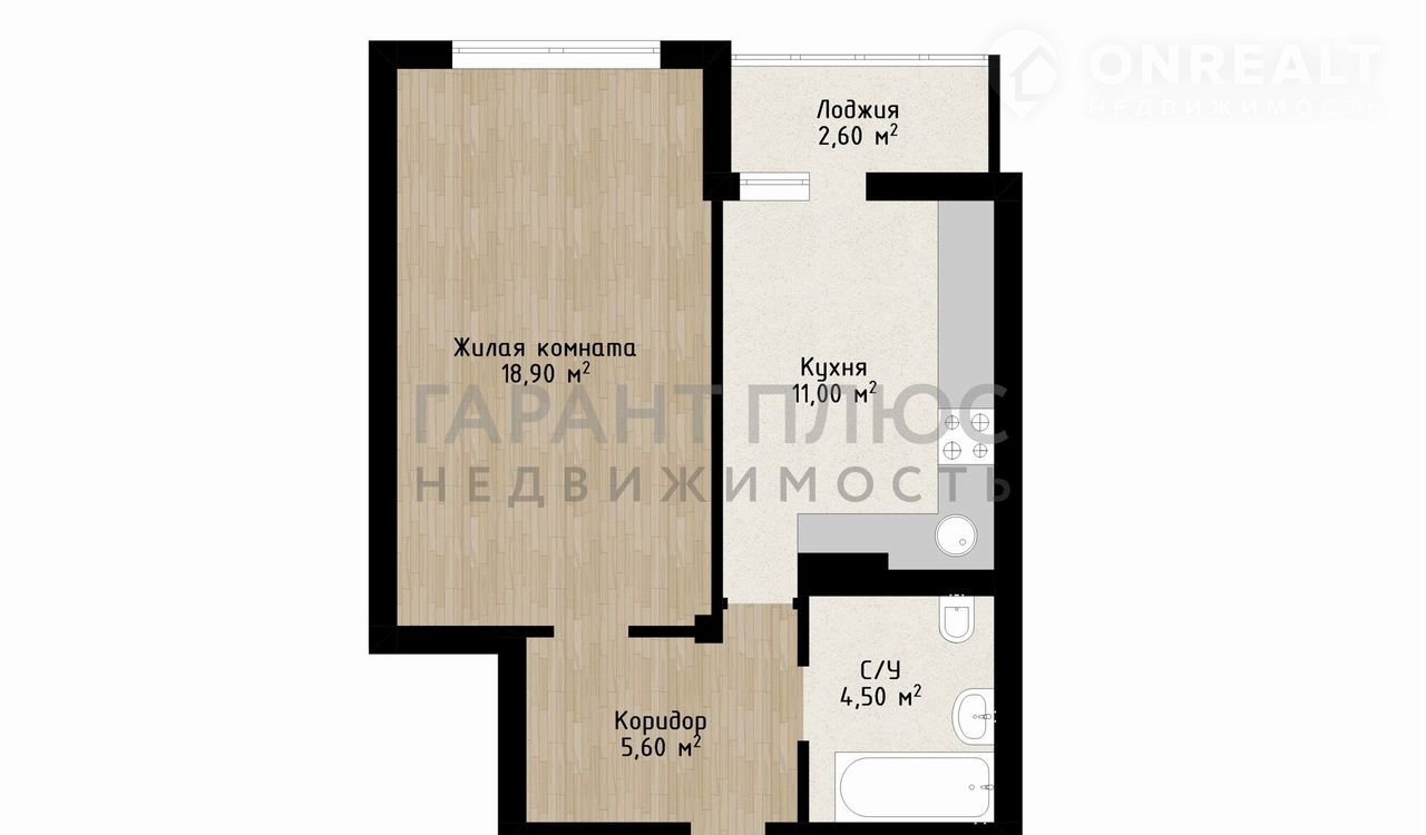 Общая площадь 42.6 м2