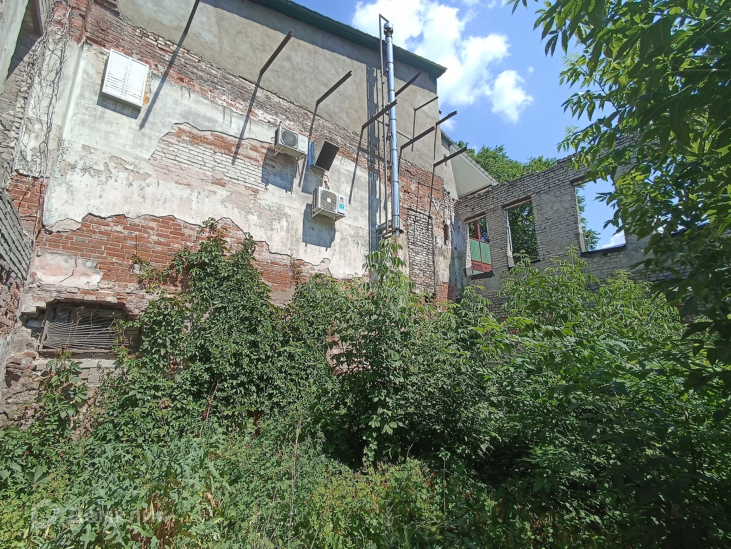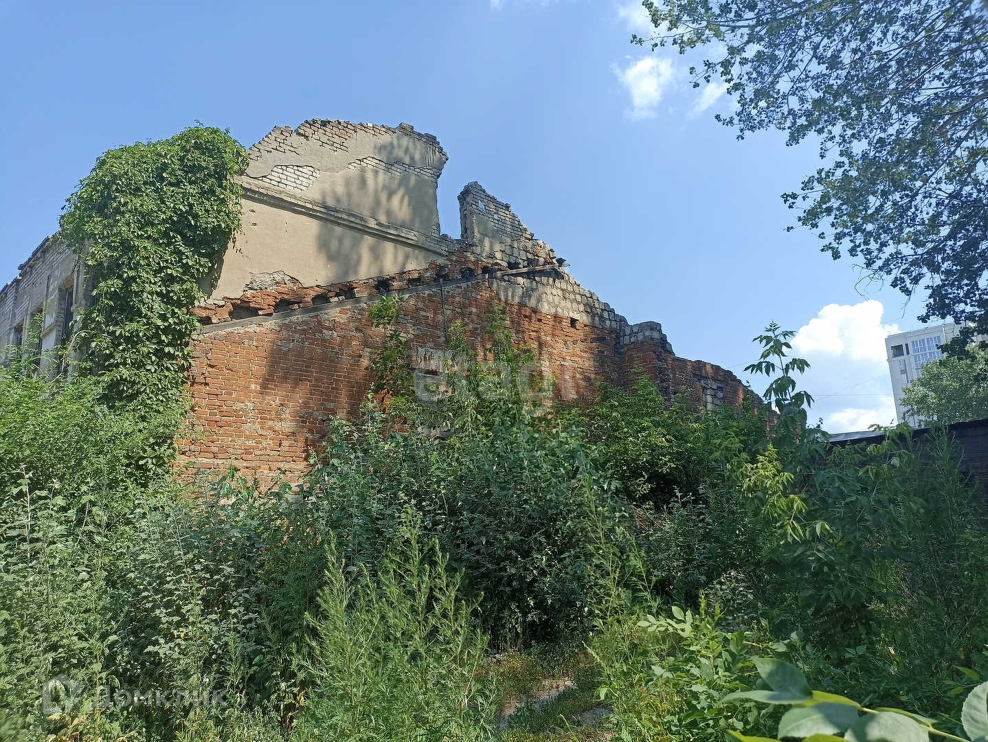 Продаю земельный участок с назначением земли населенных пунктов, на котором располагается полуразрушенное кирпичное здание. Находится на улице скороходова, рядом расположились кафе дружба и многоквартирные дома.
