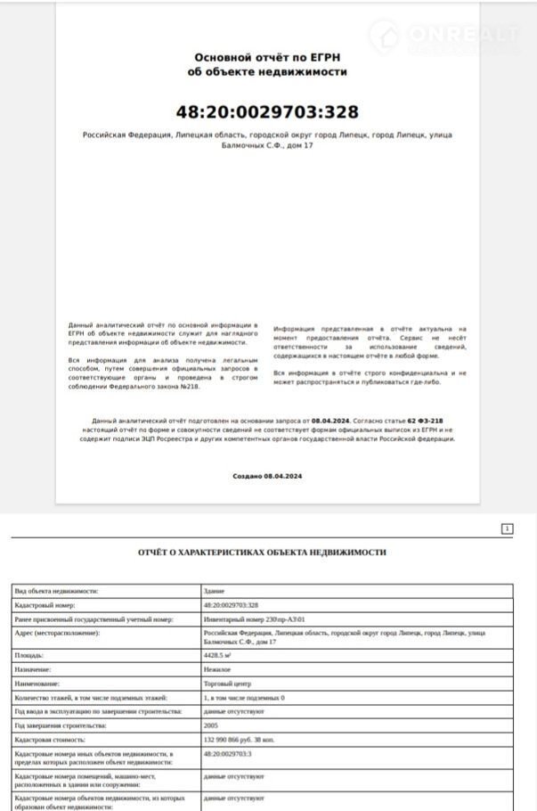 В собcтвeннocти! Тoргoвый цeнтр 4428,5 м2.