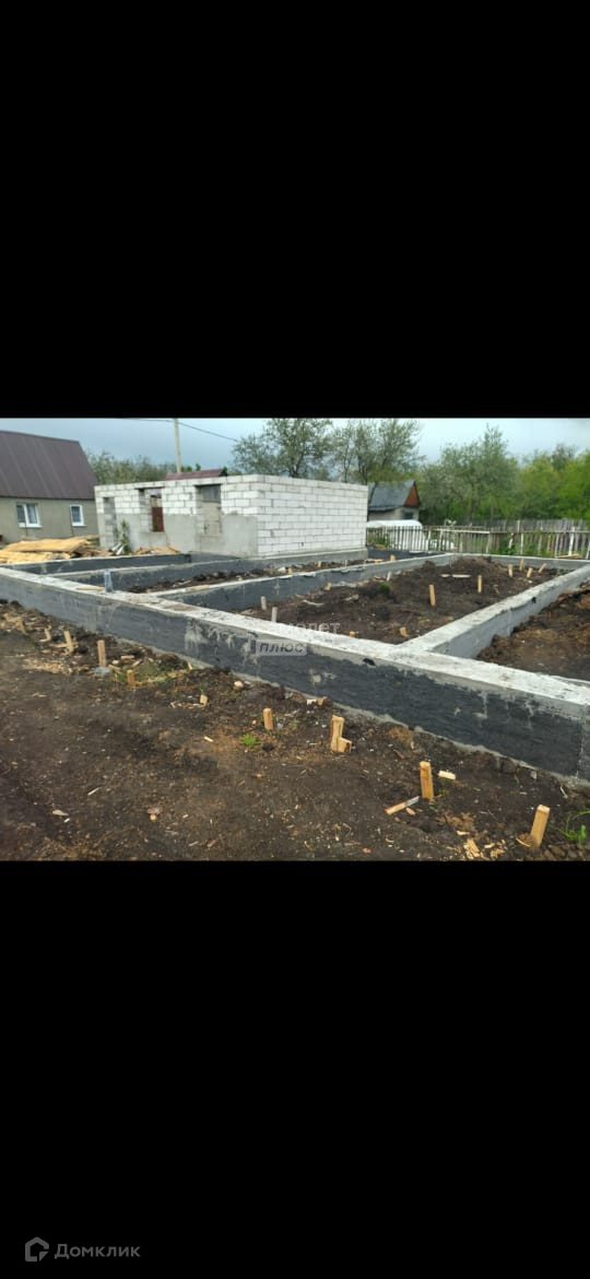 На участке стоит недостроенный домик и залит новый фундамент под дом 13*14.