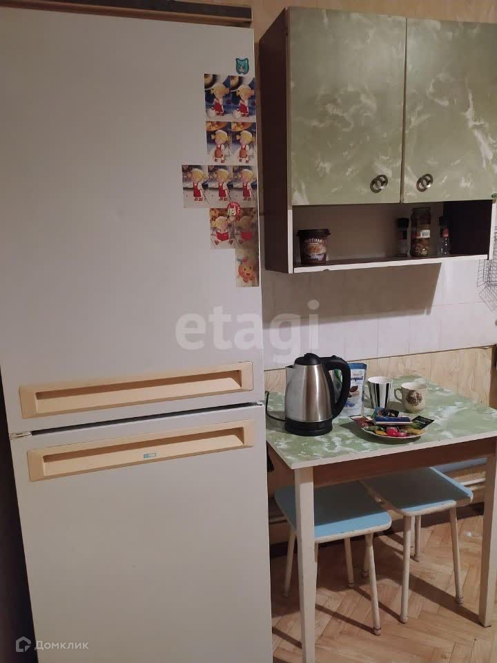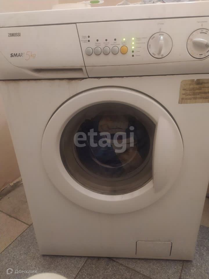 В квартире имеется всё для комфортного проживания: холодильник, стиральная машинка, диван, шкаф, стол, кухонный гарнитур.