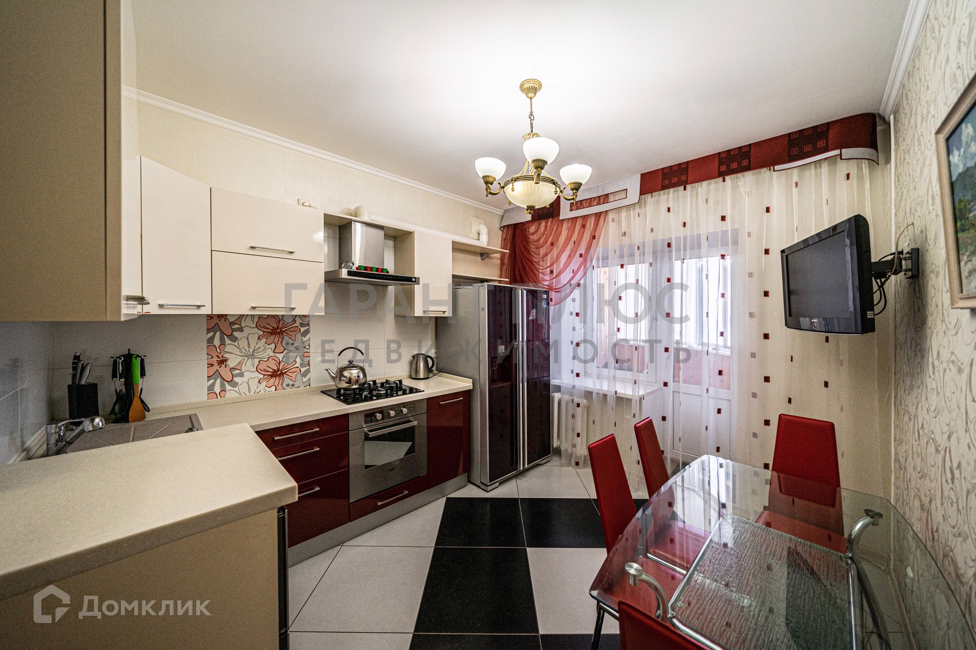 Квартира 100 метров в ЖК Октябрьский по ул Смородина д .11, 9/10 этаж кирпичного дома.  Кожаные диваны, качественная отделка, кухонный гарнитур со встроенной бытовой техникой ( вытяжка, варочная поверхность, духовой шкаф, свч), холодильник side-by-side, две застекленные лоджии, спальный гарнитур, кондиционеры, стиральная машина автомат, телевизоры, водонагреватель, спальный гарнитур.