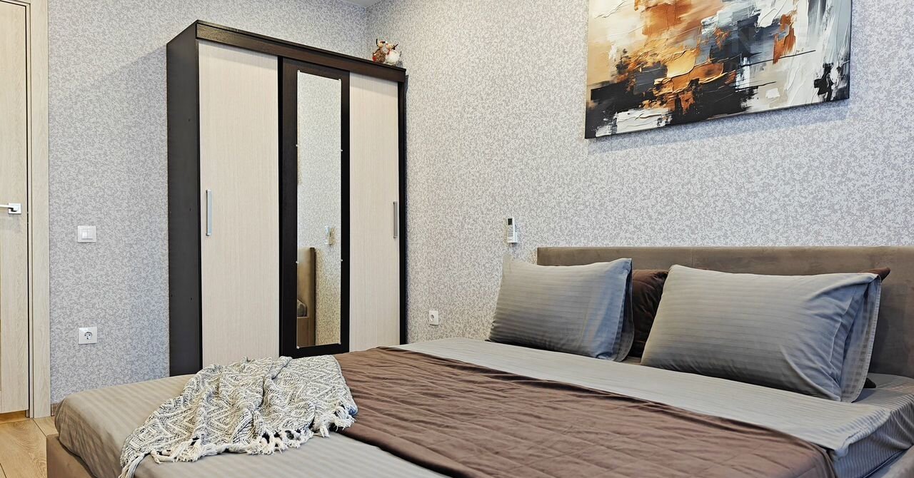 Удобное спальное место (двуспальная кровать с ортопедическим основанием , хороший матрас 160*200) + большой диван в соседней комнате (140*200) (второй комплект белья оплачивается отдельно).